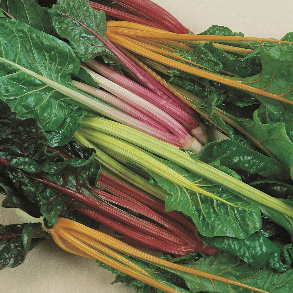 Swiss chard comes in different colors, this variety is a multicolored rainbow. Also called five color silverbeet chard. Rainbow chard was sold by Thompson and Moran Seed co. in the early 1970s, but disappeared in the U. S. by the early 1980s. It was later discovered growing in Australia and introduced back to the market. Most folks grow this variety for the colors because they are amazing, but don't forget how tasty it is also! Bright Lights Chard produces copious amounts of 18"-22" leaves in a wide assortment of colors. Use the small leaves just like spinach! Stir fry the large leaves with garlic and chicken. Your dinner guest will be wowed by not only the colors, but the flavor. Remember to blanch the bigger leaves in a pot of boiling water with one tablespoon of salt for 5-10 minutes then drain. This virtually eliminates any of the bitter flavor you sometimes get in older leaves. Young leaves we use fresh in salads or veggie wraps. Bright Lights is an outstanding chard that can be over wintered with no problem. Yes, growth slows down, but we keep harvesting it right on through the year. This chard produces amazing colors in shades of red, purple, pink, orange, yellow and white. Delicious stir fried or as steamed greens. Good spinach substitute. Stalks can be eaten like celery. Great border for your flower garden. Zones 3-10.