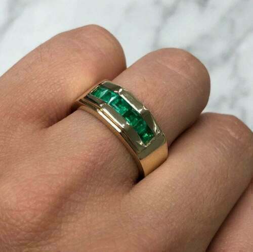 2.50Ct Princess Cut Green Emerald Men's Wedding Band Ring 14K Yellow Gold Finish