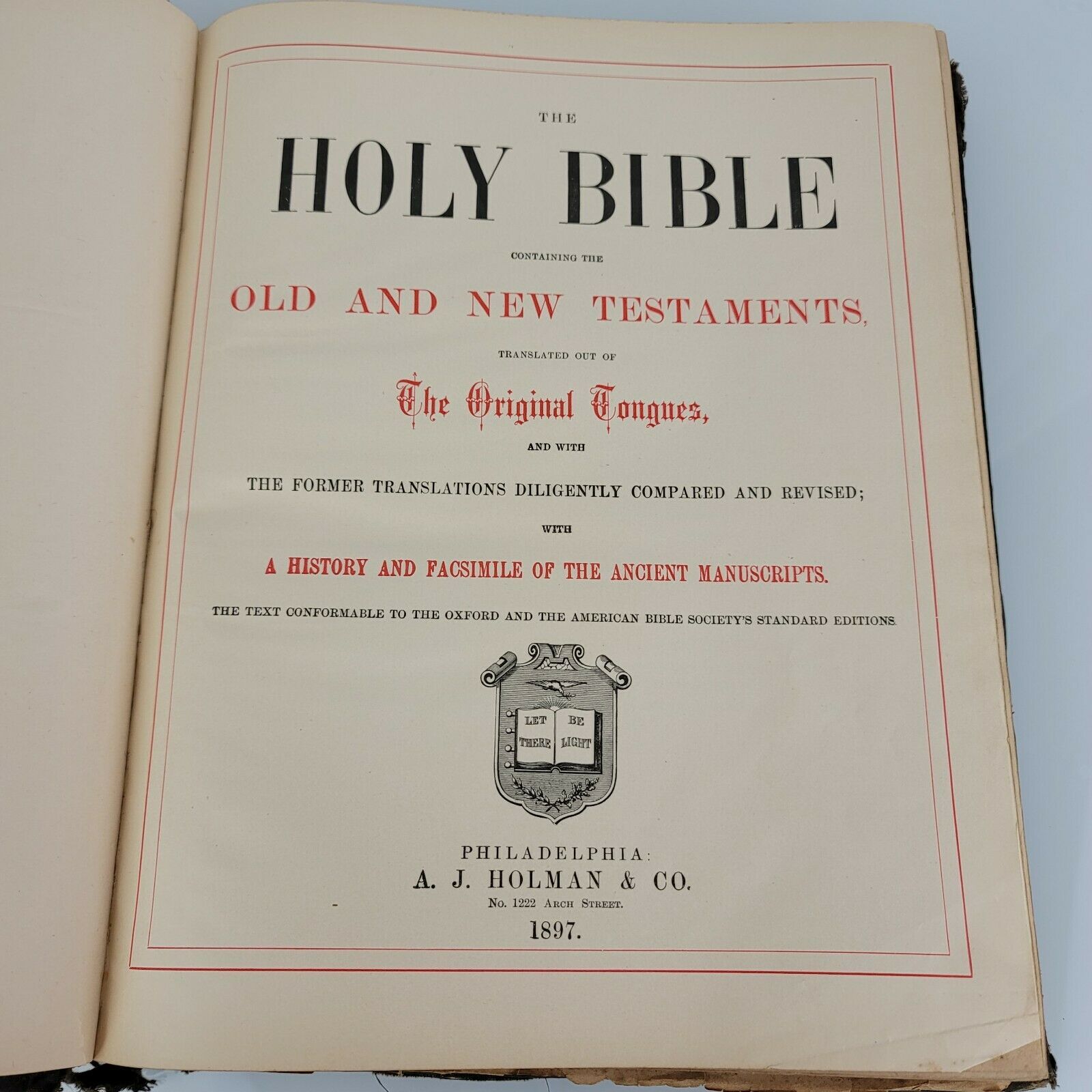 Vintage 1897 A J Holman & Co The Holy Bible Old and New Testament