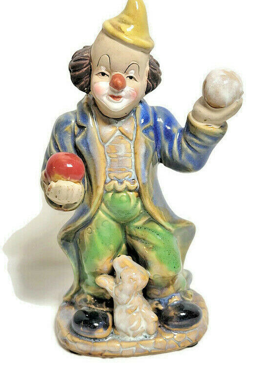Fun Clown with Balls for Puppy Dog Pet Figurine Statue Porcelain 7" Tall