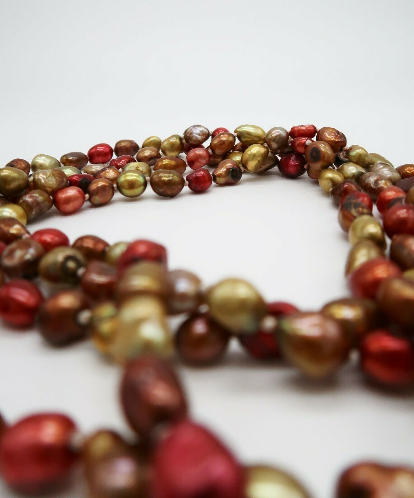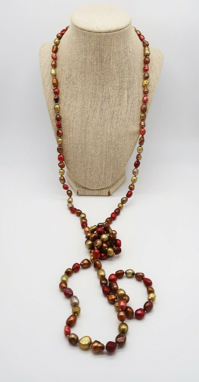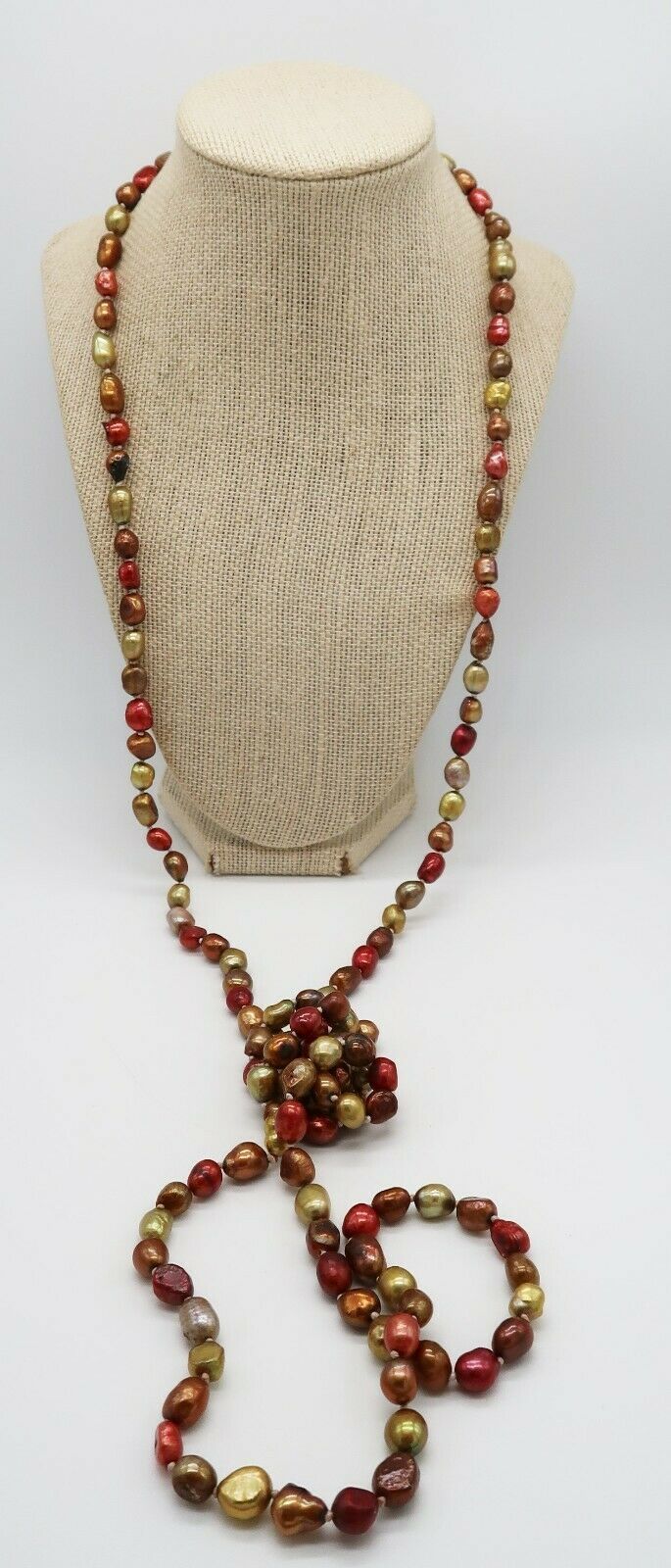 Vintage 58 inch baroque pearl multi colored flapper style necklace