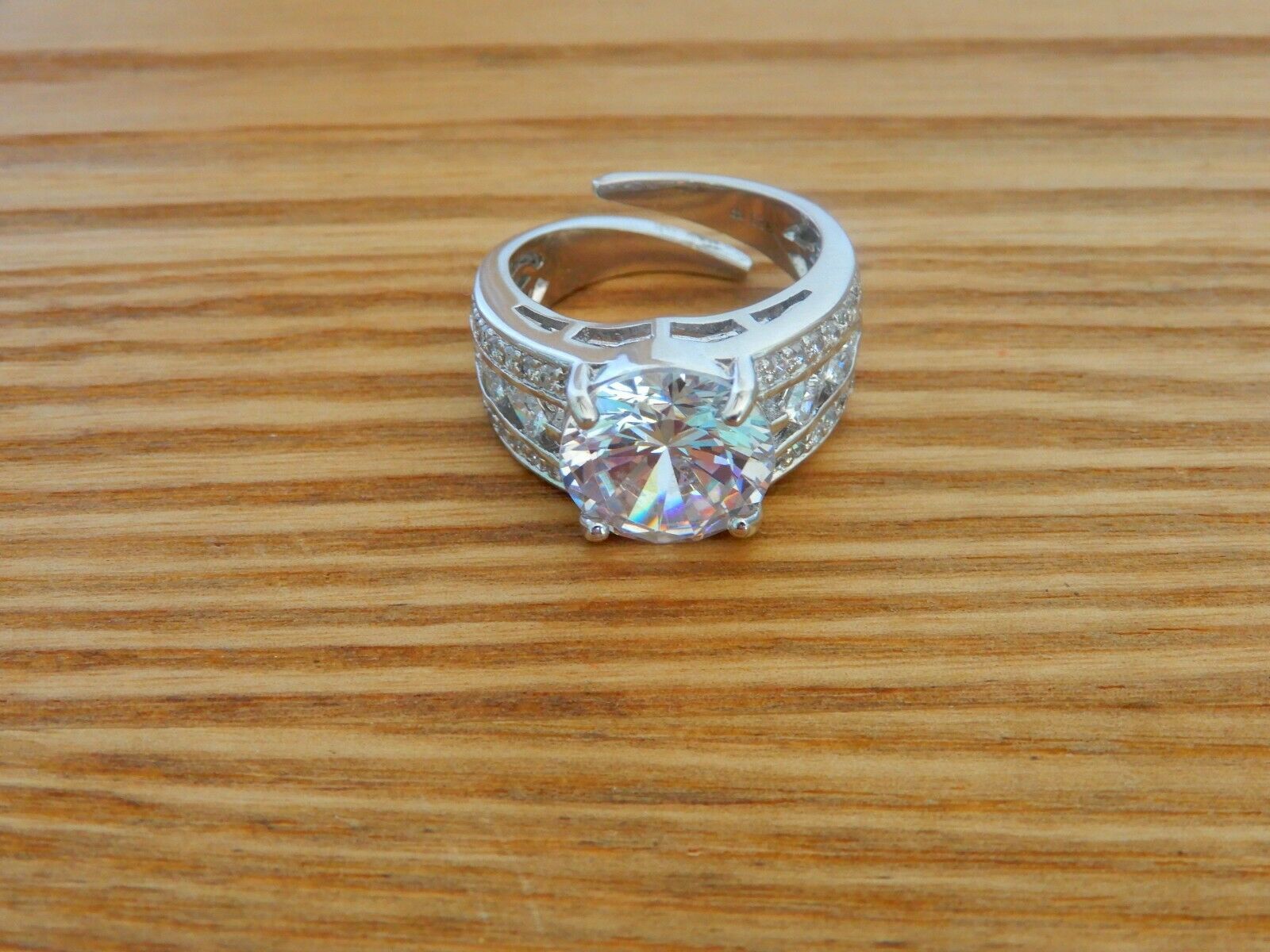 JTV 925 sterling silver cocktail ring w/ large round CZ stone & unique open back