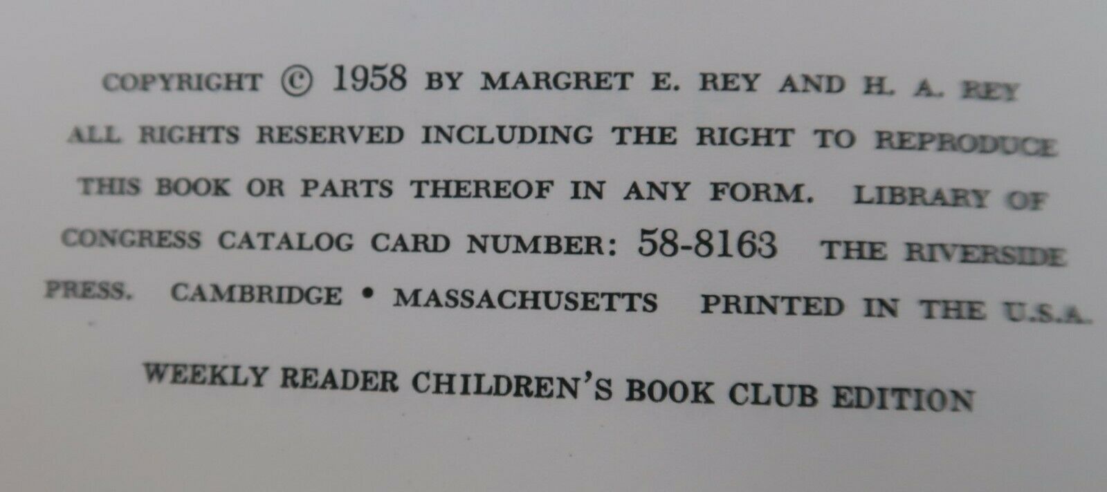 Vtg Curious George Flies a Kite Margaret Rey Weekly Reader 1958 Hardcover Book