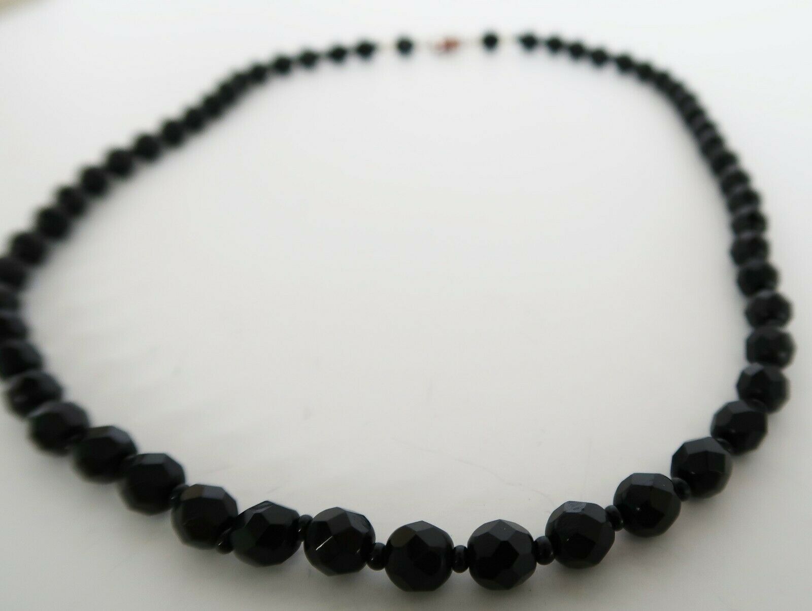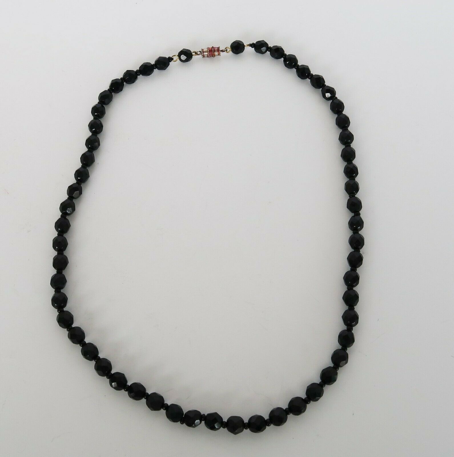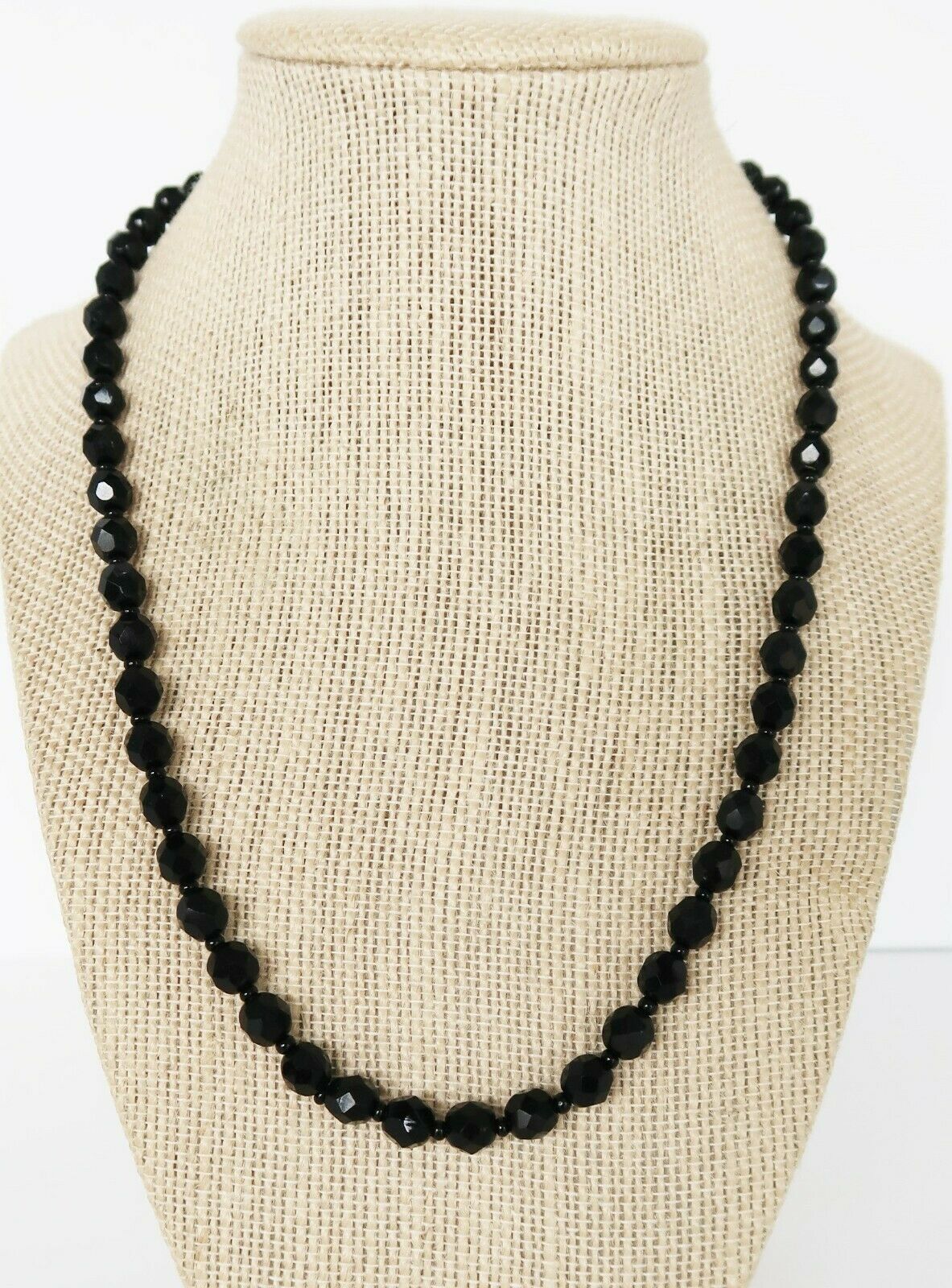Vintage 1950's black jet glass faceted small bead princess length necklace