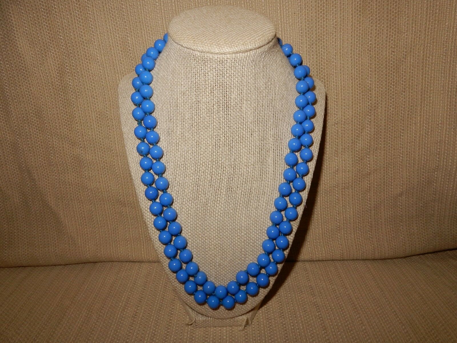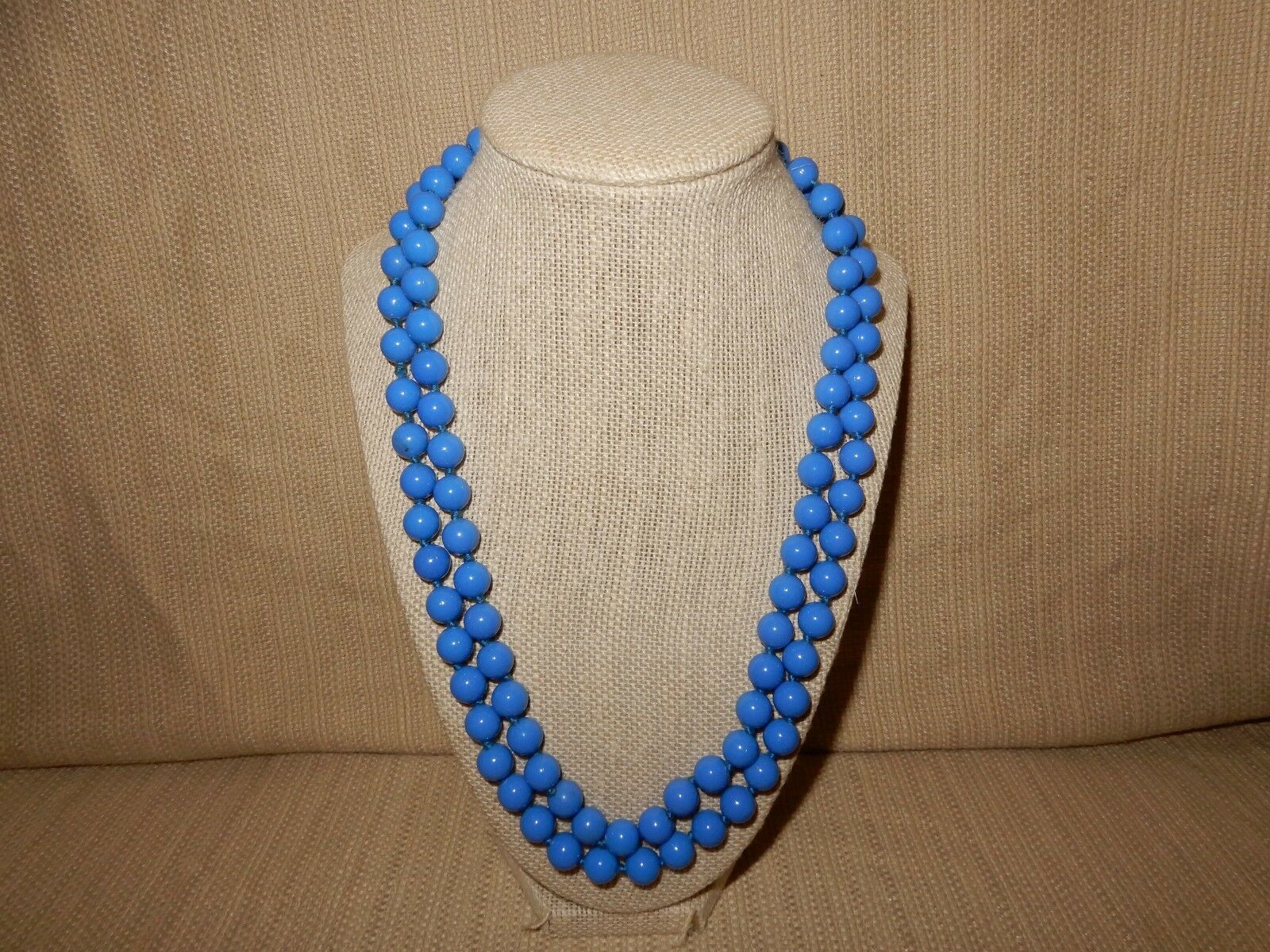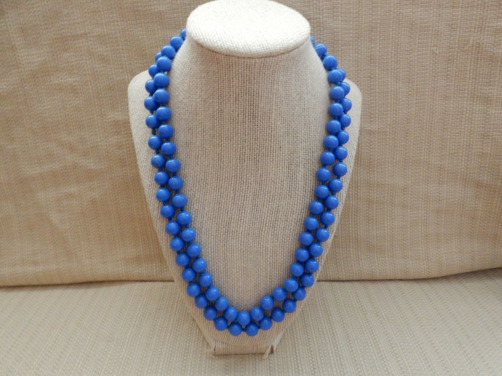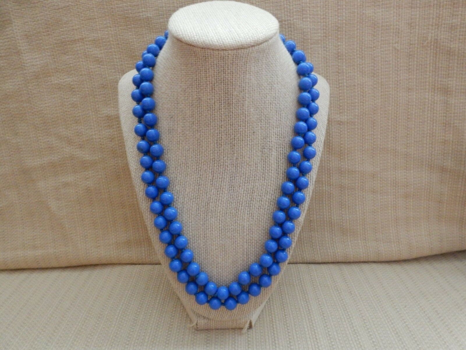 Lovely vintage 2 strand 1950s look blue beaded princess length necklace