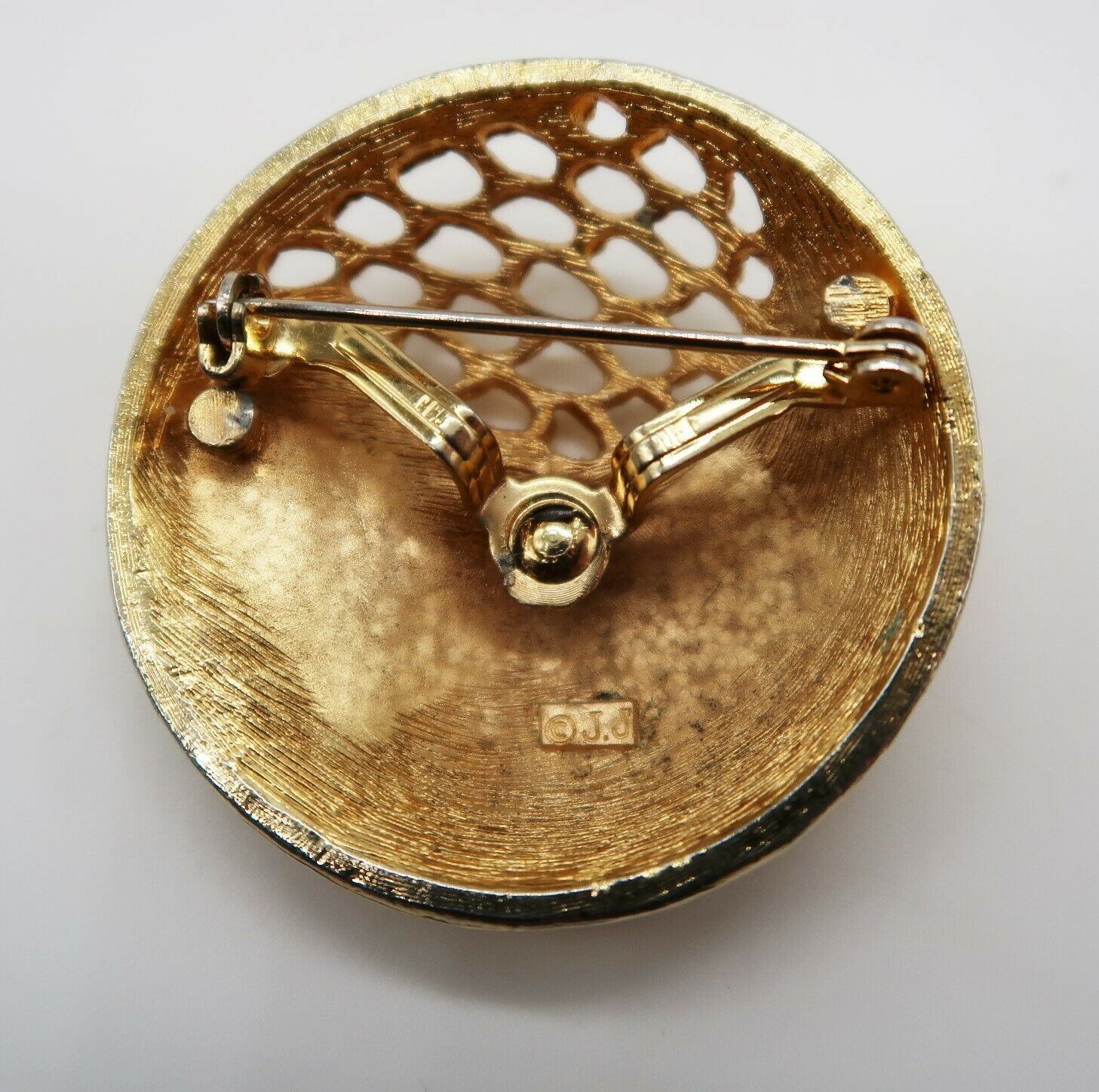 Vintage brushed gold tone round modernist brooch by JJ