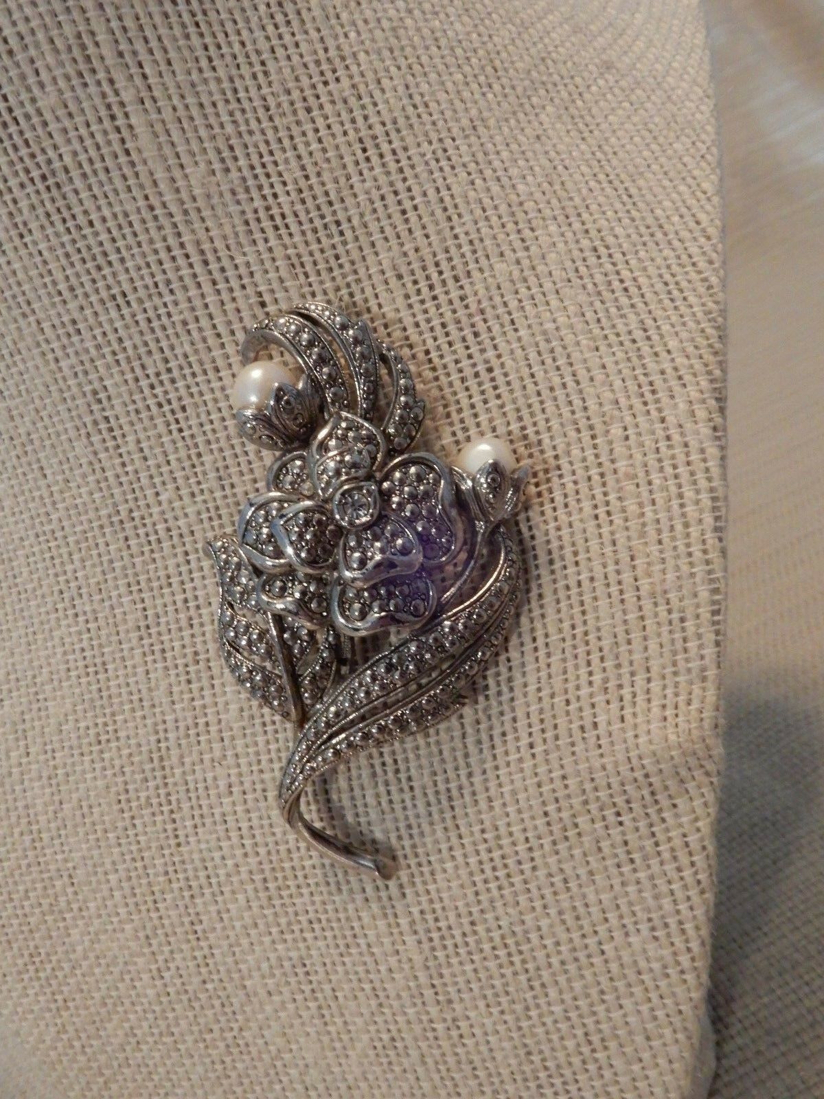 Vintage Kenneth Jay Lane for Avon silver tone marcasite flower brooch