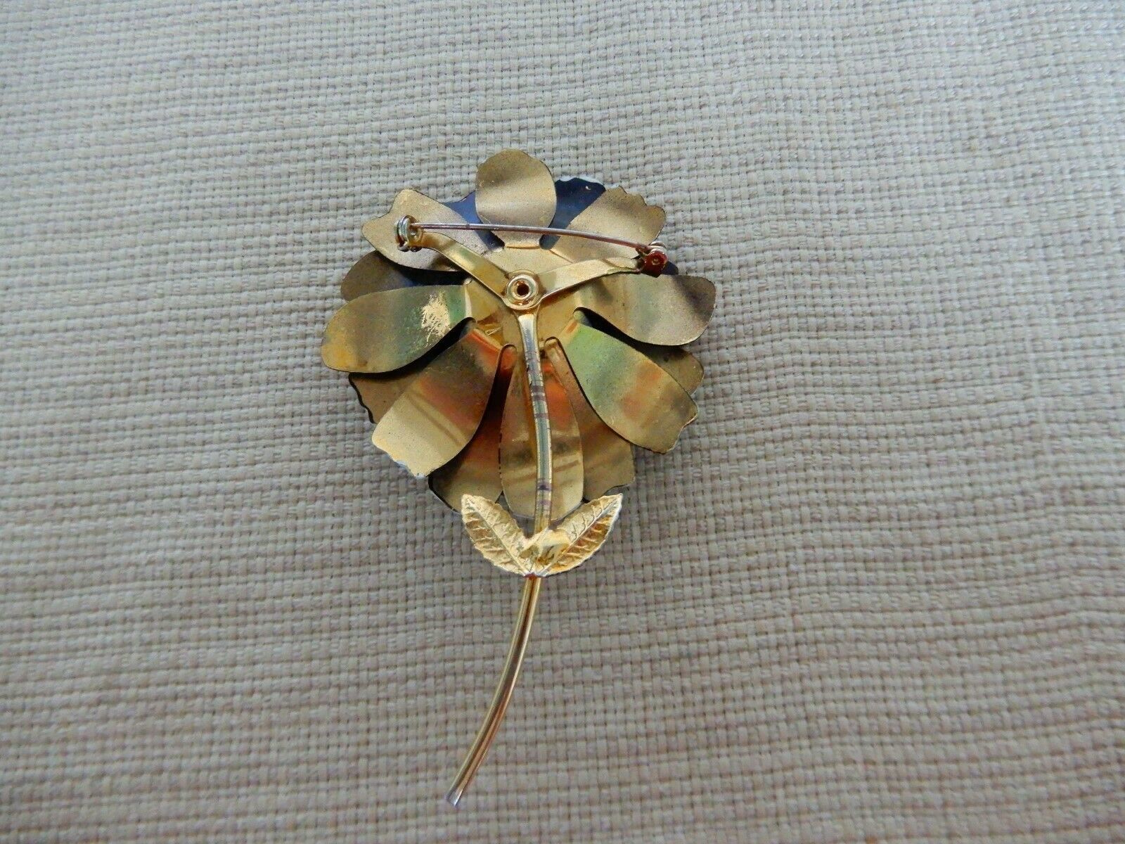 Up for sale today is this great vintage enamel over metal flower brooch. It is in very good condition.