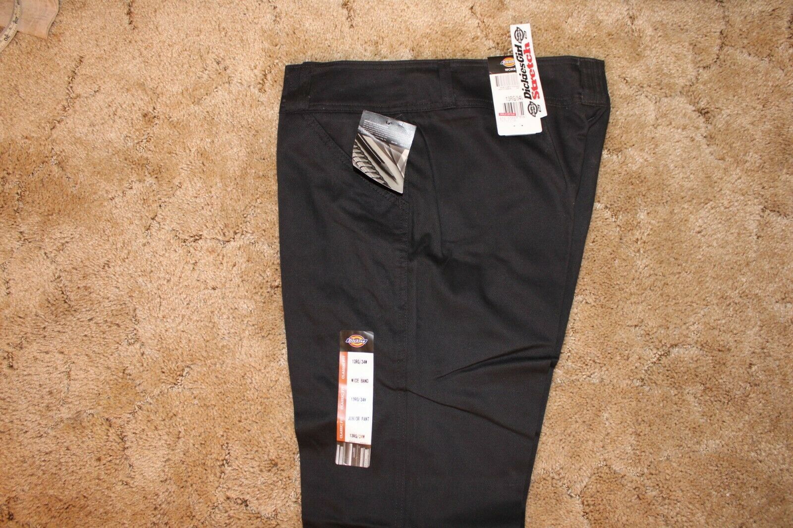 Dickies Girl's Wide Band Stretch Fabric Classic Fit Sz 13RG Black Pants 34 x 32