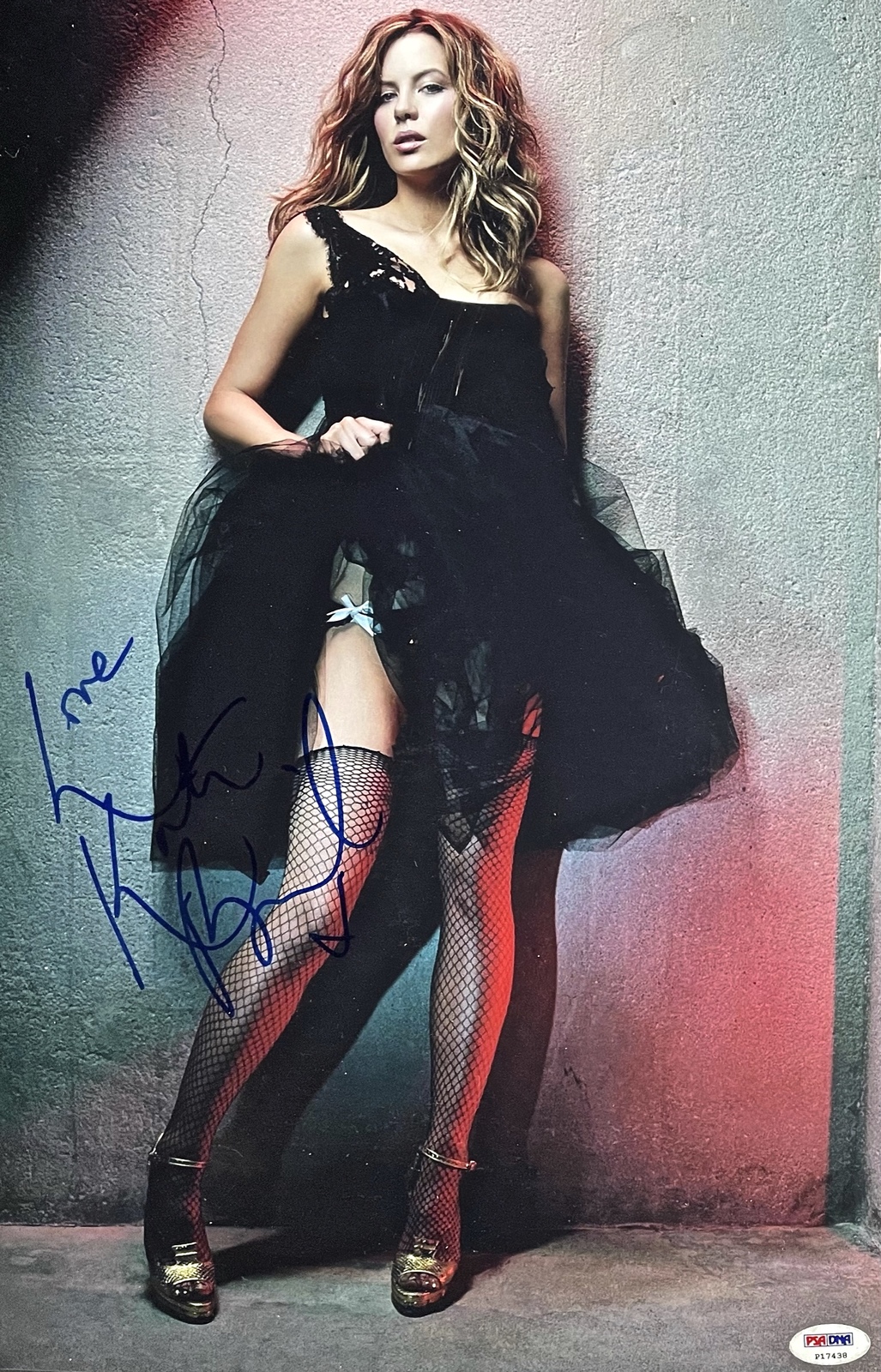 Kate Beckinsale autographed 12" x 18" photo hand signed in blue felt tip marker. This beautiful photo has been authenticated by PSA/DNA authentication Certification Numbered: P17438 and will come with the matching cert card you see in the scan. This photo has been professionally framed to an overall size of 21 5/8" x 27 5/8" with acid free double matting and is ready to hang. This frame will be shipped FedEx Home Delivery to you. Buy with confidence we have been selling in-person autographs since 1992. Hollywood
