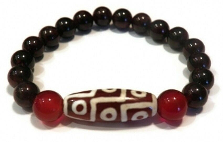This DZI will enable the wearer to gain power and influence.9 Eyes dZi brings the most complete blessings, which helps to remove negative sins and dissolves all obstacles and blockages along your path. It could also protect the wearer against all kinds of misfortune and harm from evil This Bracelet is made up one Dzi bead with 9 eyes and feature small obsidian beads strung on cord to assure a good fit. The obsidian crystal has the ability to dissolve pain, tensions, energy blocks, and vascular contraction.