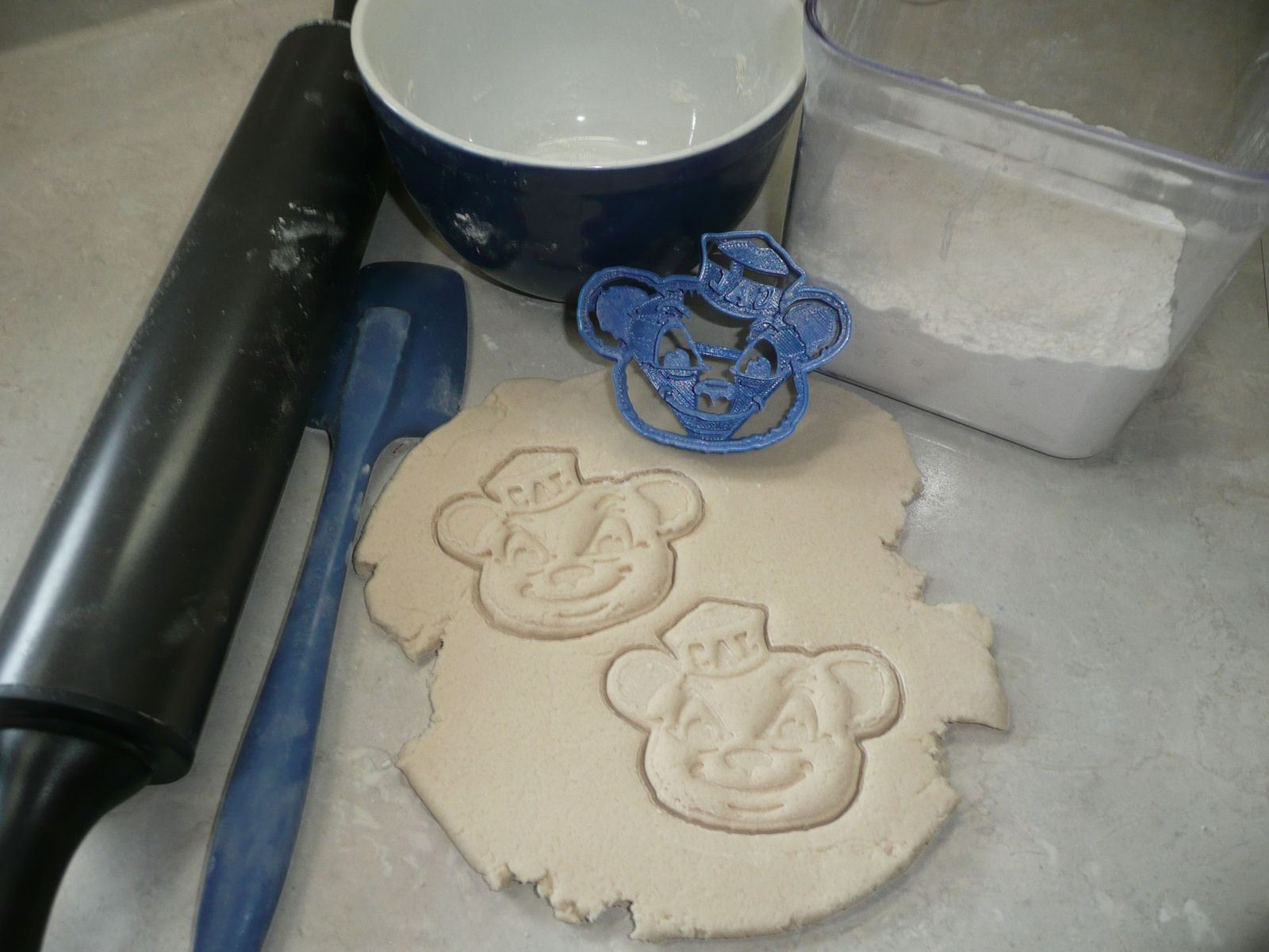 Cookie cutters are 3D printed in food-safe plastic.