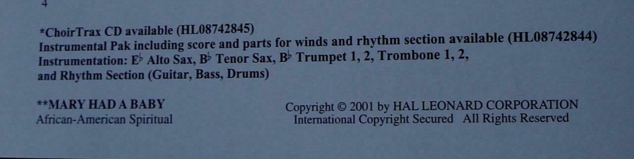 You are bidding on this great old piece of sheet music, Mary, Go Tell It, arranged by Mark Hayes. It has a copyright date of 2001 on it, and was published by the Hal Leonard Corporation. It is in good condition, for its age. There are also some scuffs and light stains the music as well. The music is 11 pages long. There are many tears along the edges, and there are pencil and pen notations throughout the music. There are also many creases along the edges and corners. This is a great, old piece of sheet music in need of some TLC, and still a great find.
