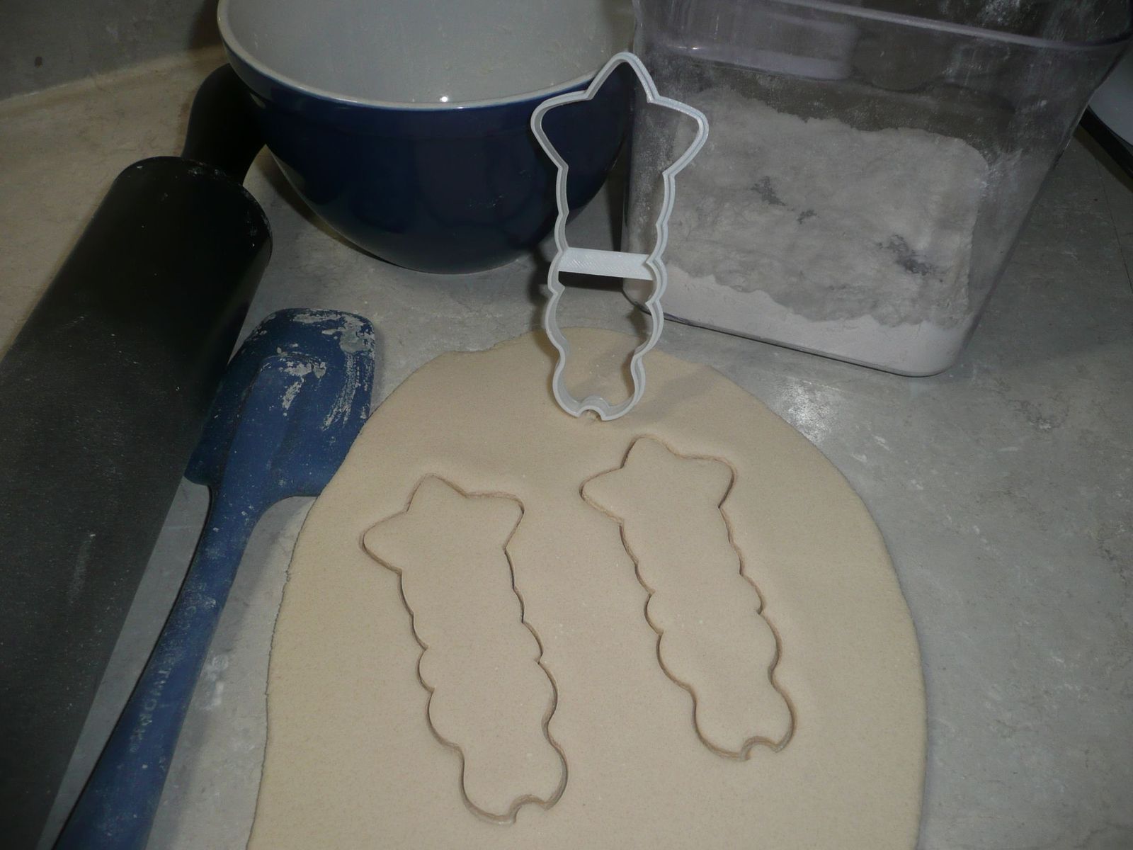 Cookie cutters are 3D printed in food-safe plastic.