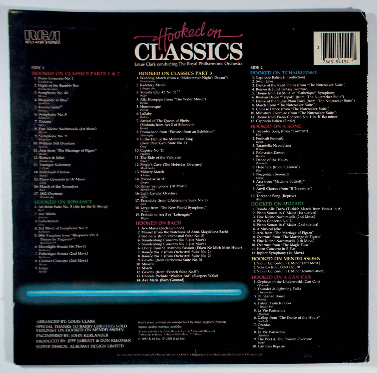 Hooked on Classics peaked at No. 4 on the U.S. Billboard albums chart, remaining on the chart for 68 weeks. It was certified platinum. The first cut was a very successful single, reaching No. 10 on the Billboard Hot 100 in late-1981/early-1982. Hooked on Classics was the first and most successful album in the series in 1981, toward the end of the disco era's peak in popularity. The series had the positive effect of reviving interest in classical music among a new generation. Louis Clark, former arranger for Electric Light Orchestra, conducted the Royal Philharmonic Orchestra playing a collection of very recognizable extracts from classical music pieces played over a continuous beat (sometimes an overtly disco fast beat, sometimes a slower and more subtle rhythm, always produced by a LinnDrum) that linked the segments together. This is called the Symphonic Rock or Orchestrated Rock genre.