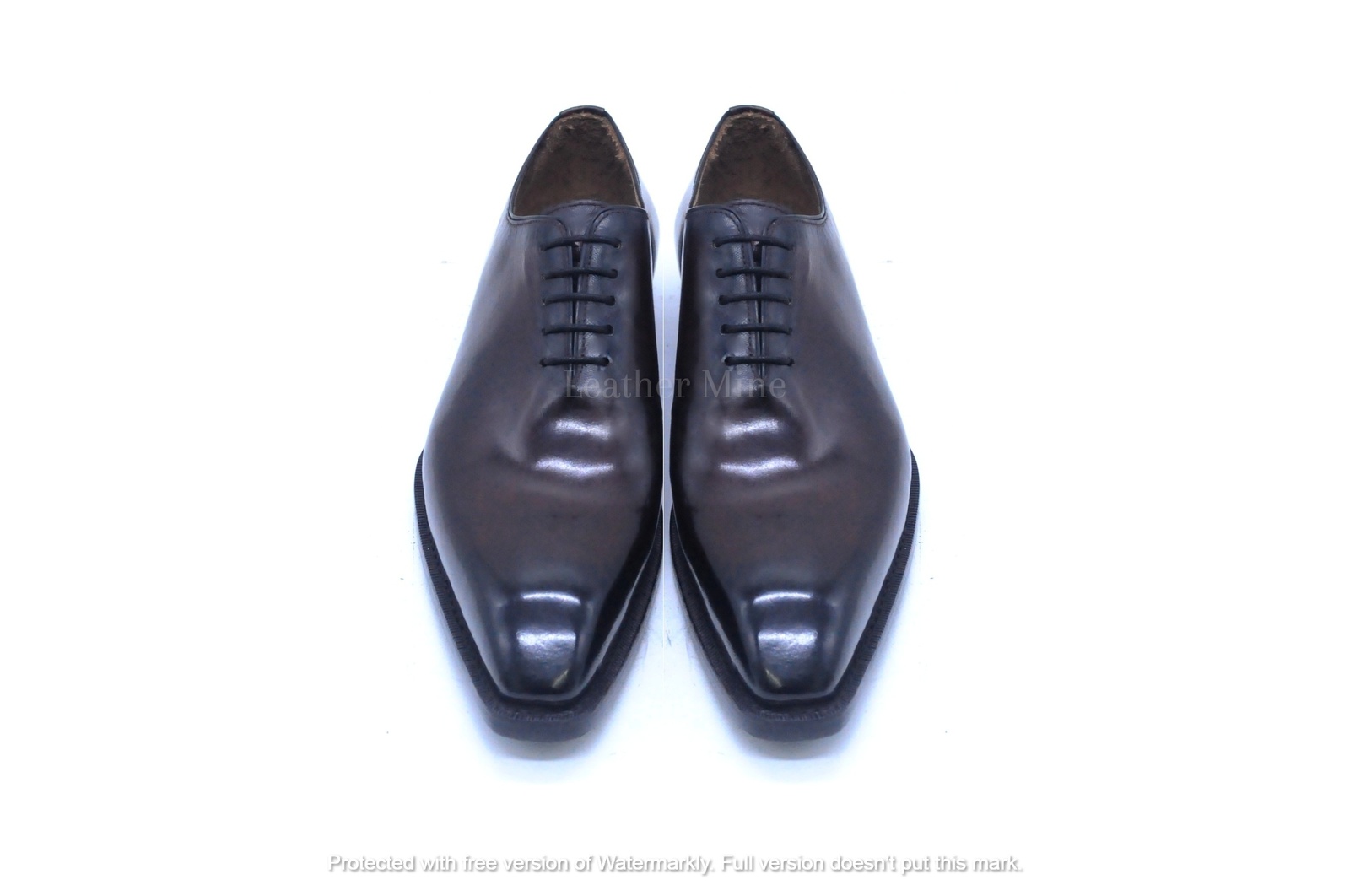 Men's Handmade Leather Shoes Ox Blood Patina Whole Cut Oxfords Dress Shoes