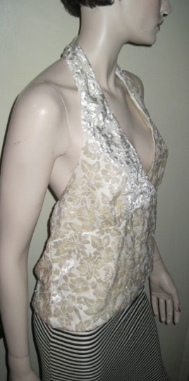 Vintage MODA INTERNATIONAL BEADED Floral Pattern Elegant Ladies Women's White blouse Top. Size Medium