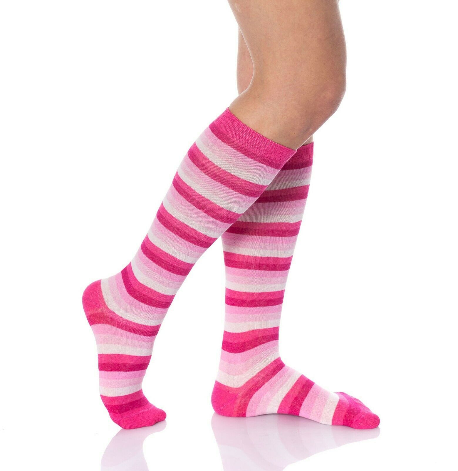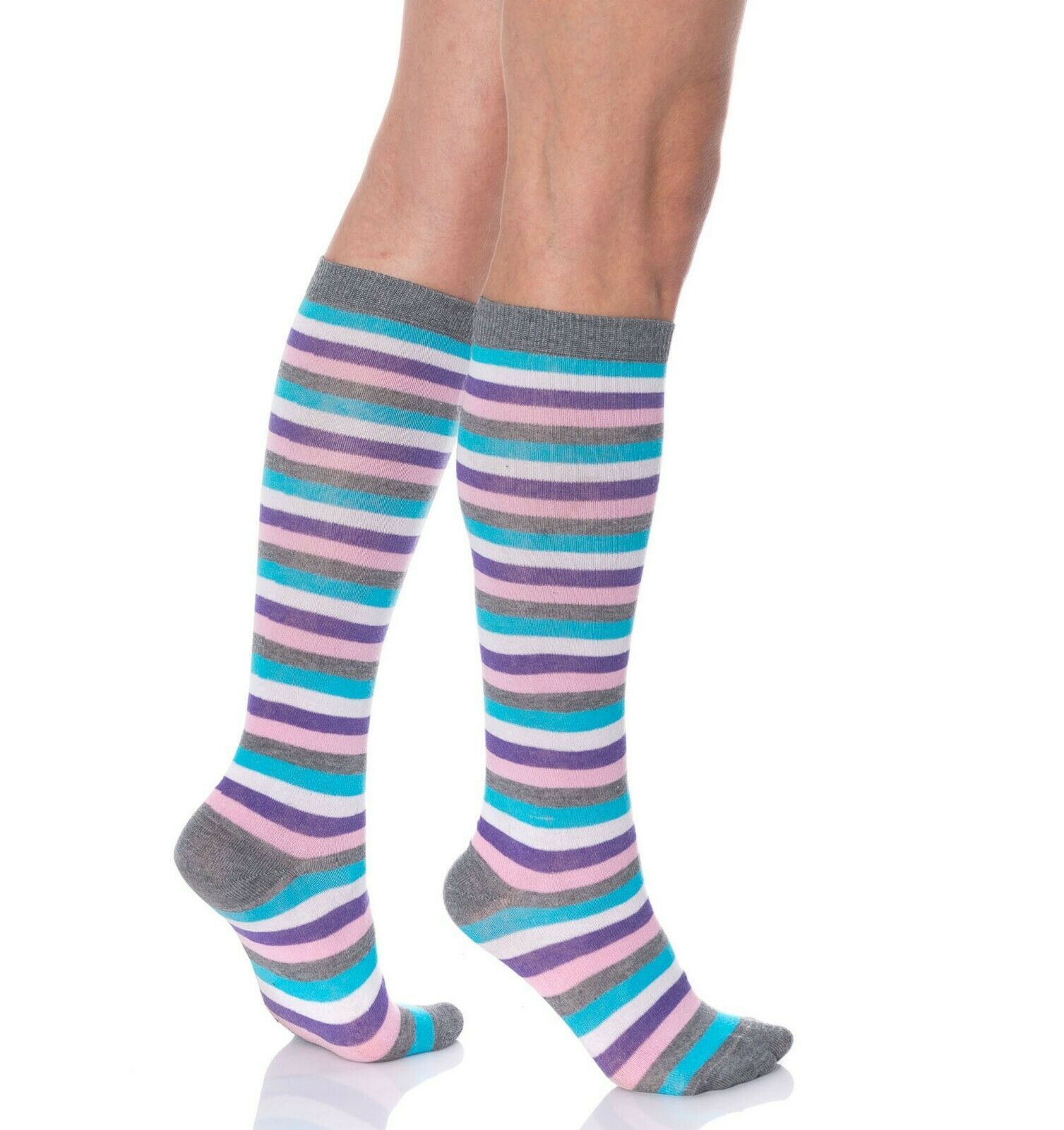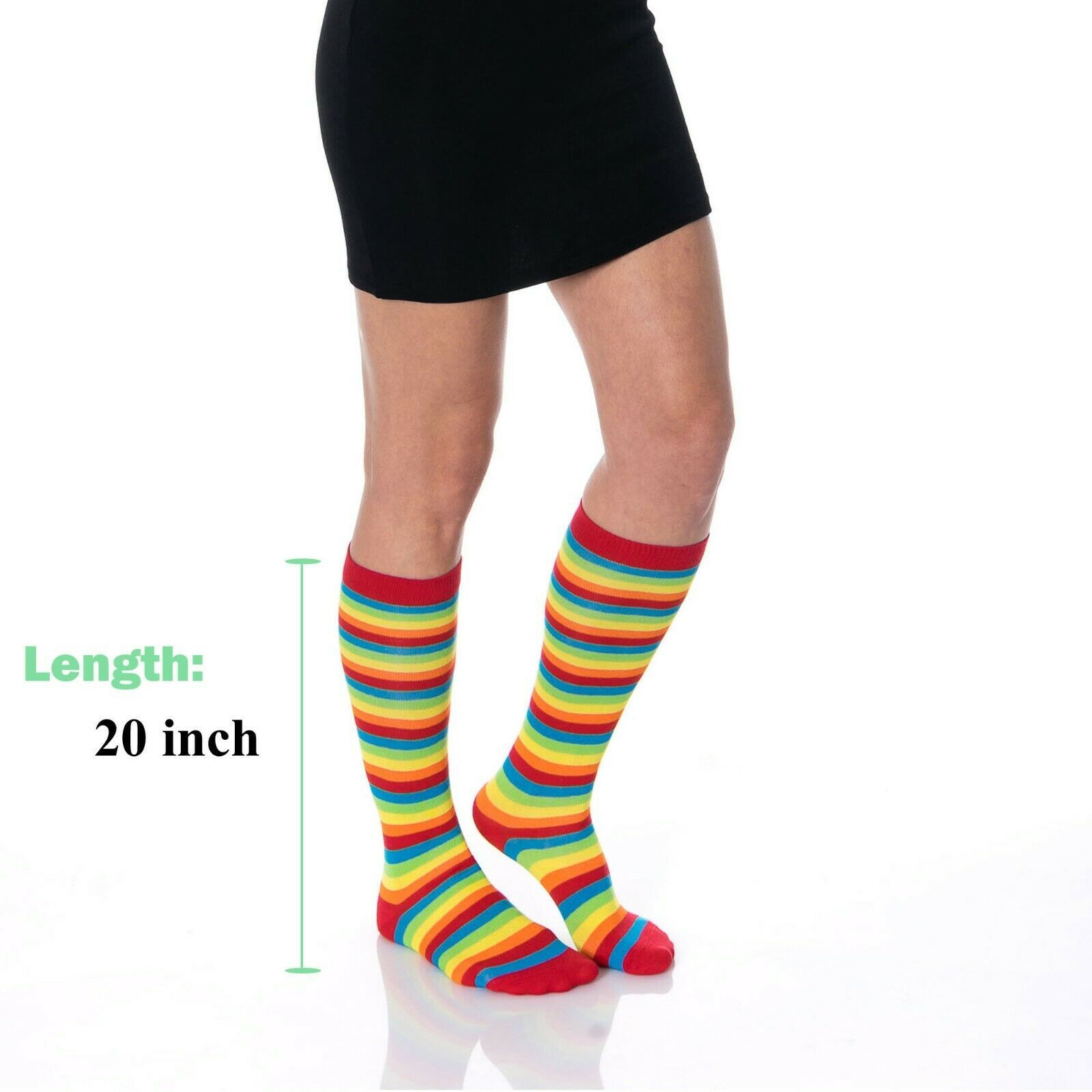 Striped Knee Socks for Women 6 Pairs Colorful Over the Calf Combed Cotton Socks 9-11