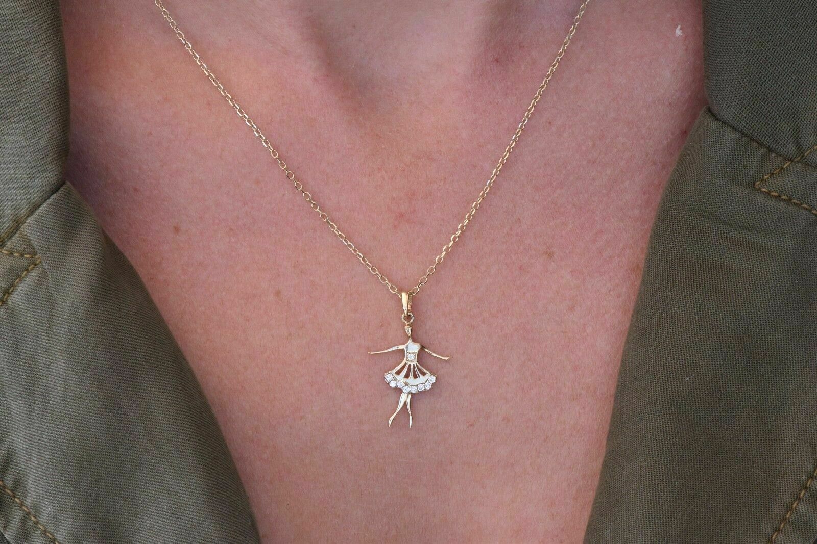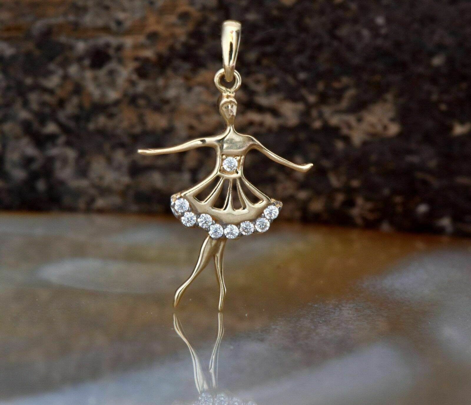 1Ct Round Cut Diamond Ballerina Charm Pendant 14k Yellow Gold Finish Free Chain