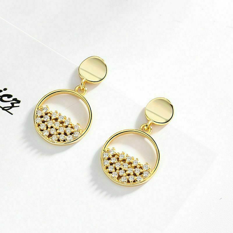 1Ct Round Cut Diamond Disc Designee Cluster Halo Earrings 14K Yellow Gold Finish