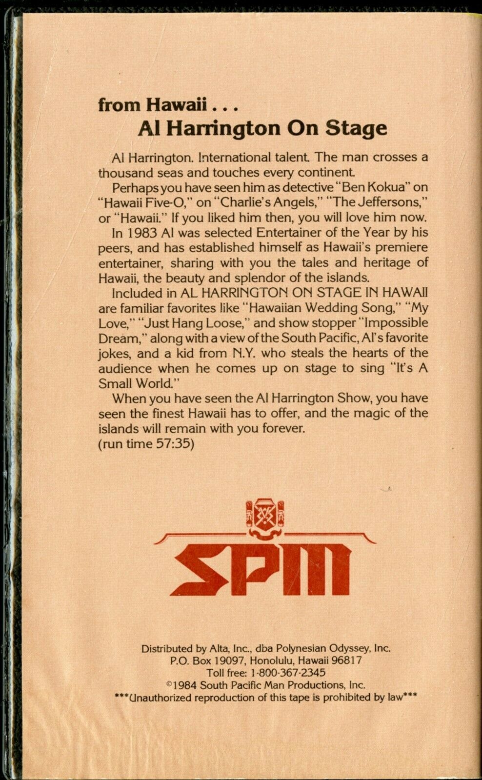 AL HARRINGTON ON STAGE IN HAWAII VHS SIGNED 1984 SOUVENIR VIDEO SPM VIDEO TESTED