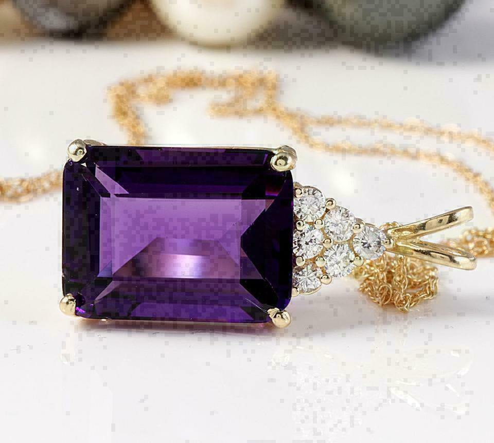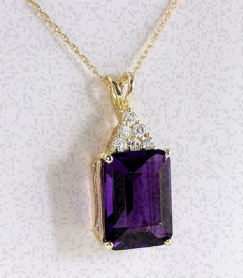 2Ct Emerald Cut Purple Amethyst Womens Pendant 14K Yellow Gold Finish Free Chain