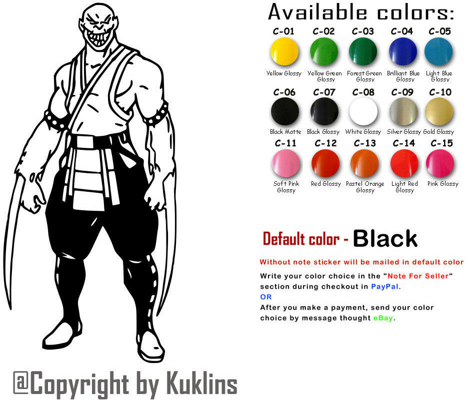 Mortal Kombat Vinyl Decal Sticker Car Window Sub-Zero Liu Kang Motaro Goro Gamer