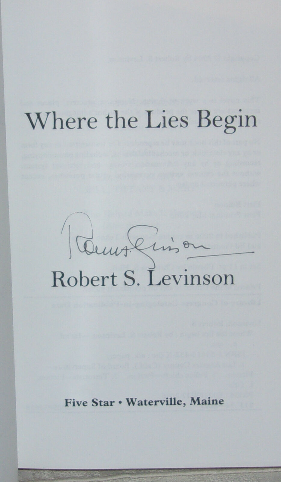 Robert S Levinson WHERE THE LIES BEGIN First edition SIGNED Los Angeles Noir F/F