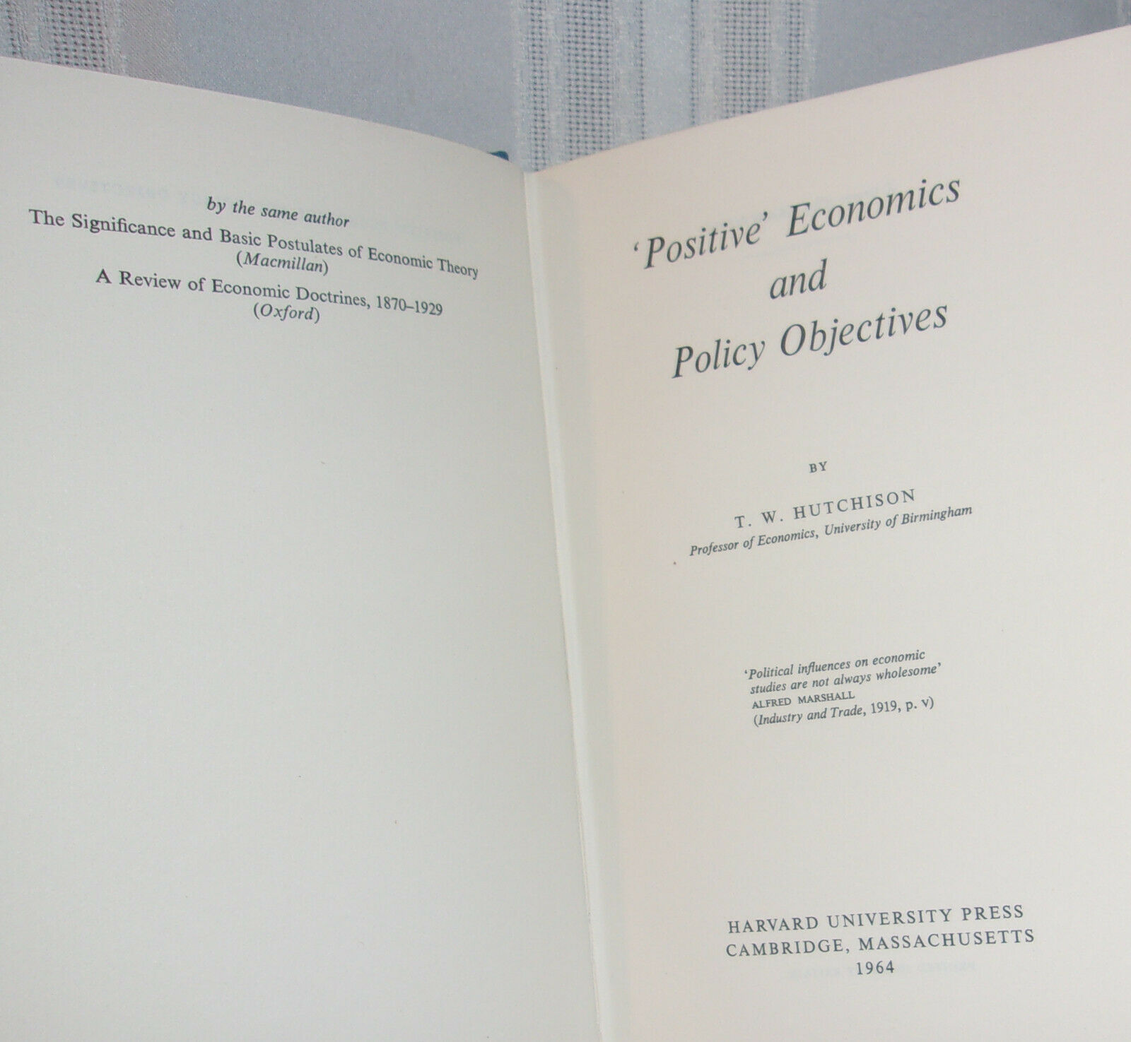 Hutchison POSITIVE ECONOMICS & POLICY OBJECTIVES 1964 Hardcover First edition DJ