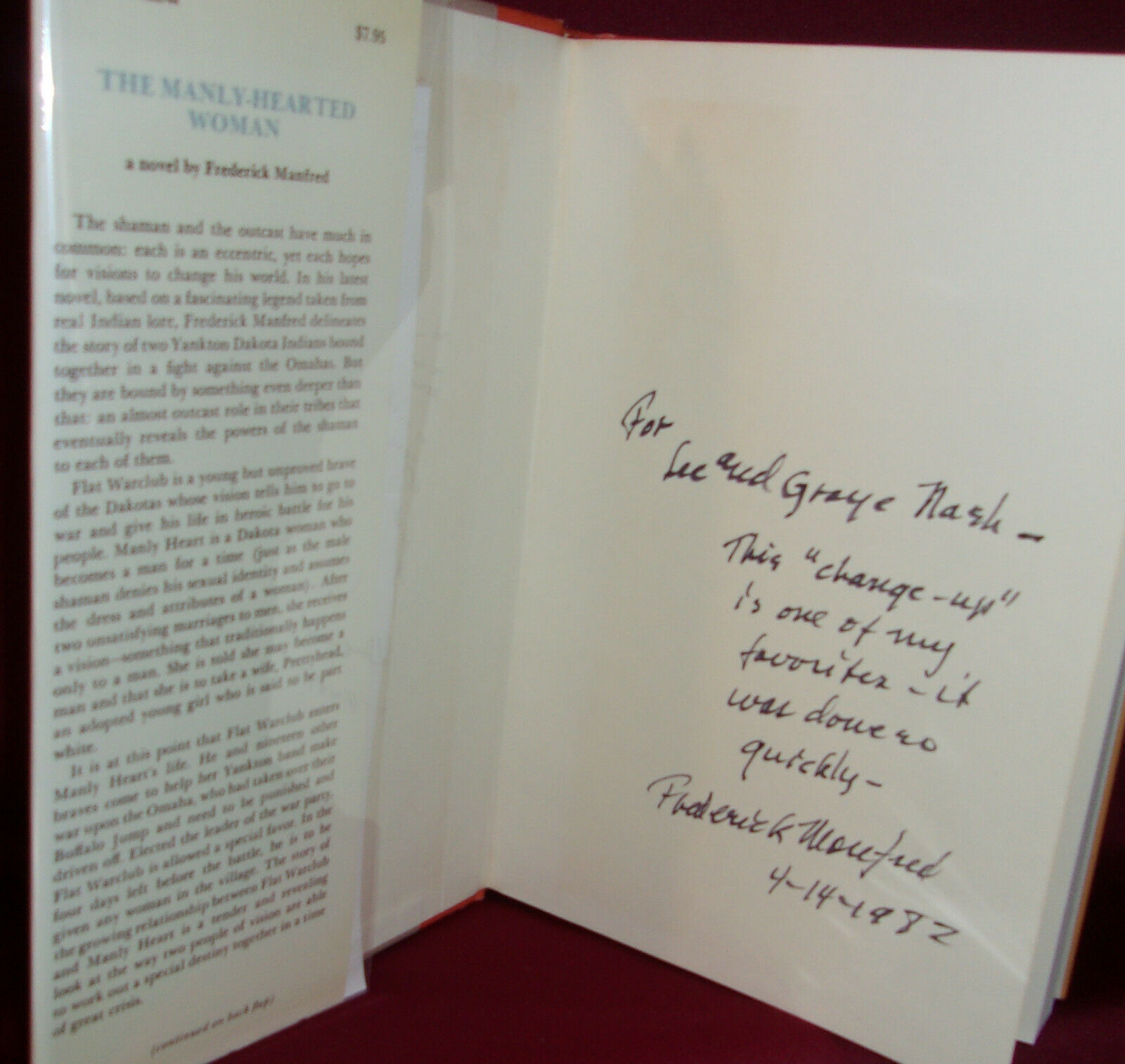 Frederick Manfred THE MANLY-HEARTED WOMAN First edition 1975 Inscribed & SIGNED