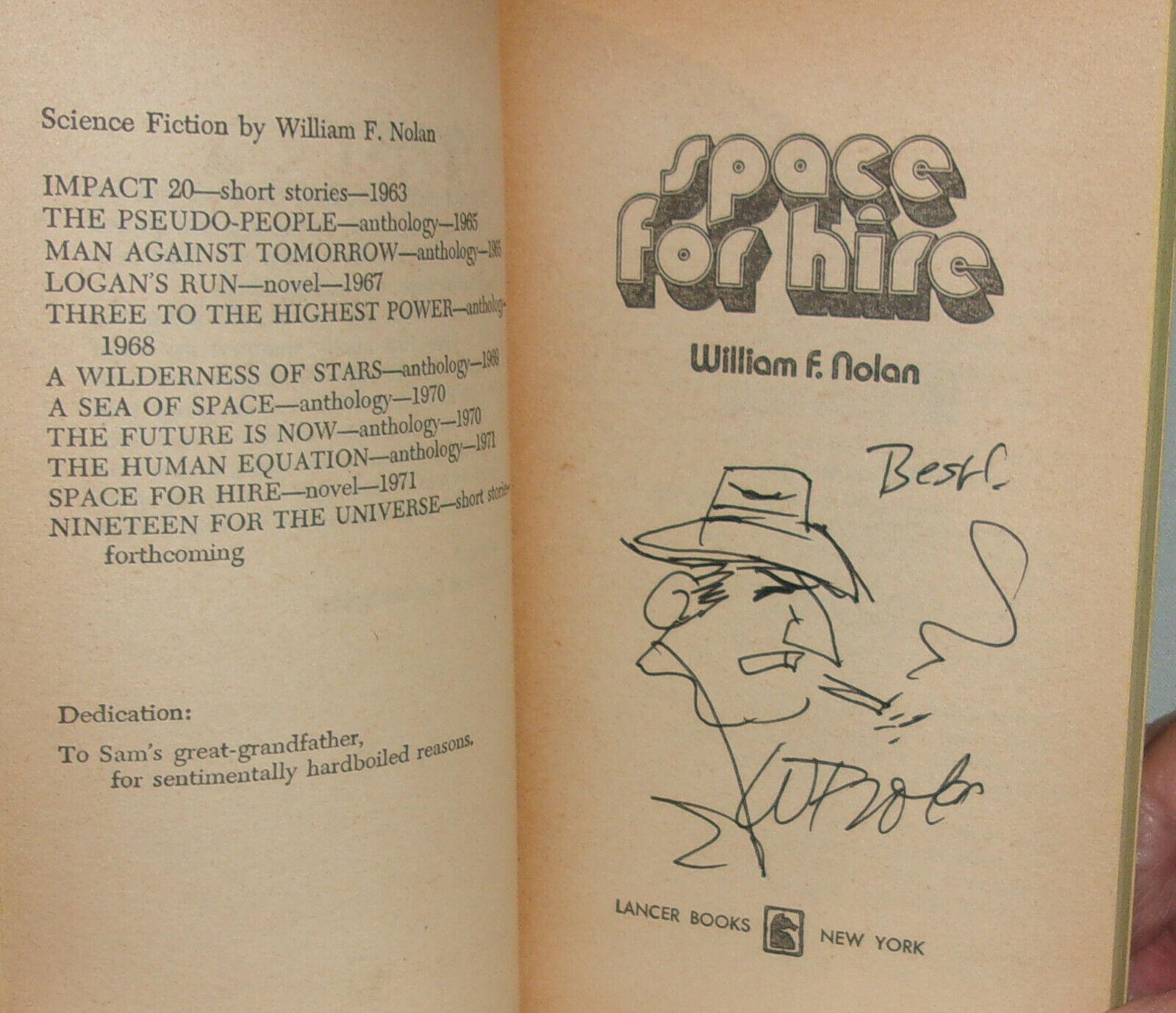 William F. Nolan SPACE FOR HIRE First edition Paperback Original SIGNED Drawing!