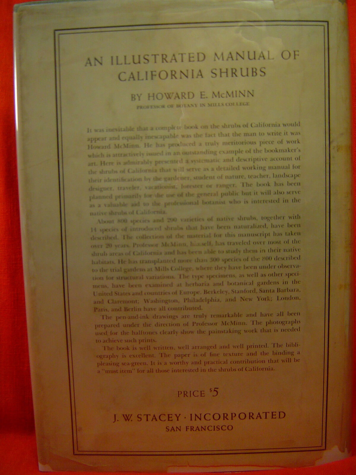 Howard E McMinn AN ILLUSTRATED MANUAL OF CALIFORNIA SHRUBS First ed 1939! HC DJ!