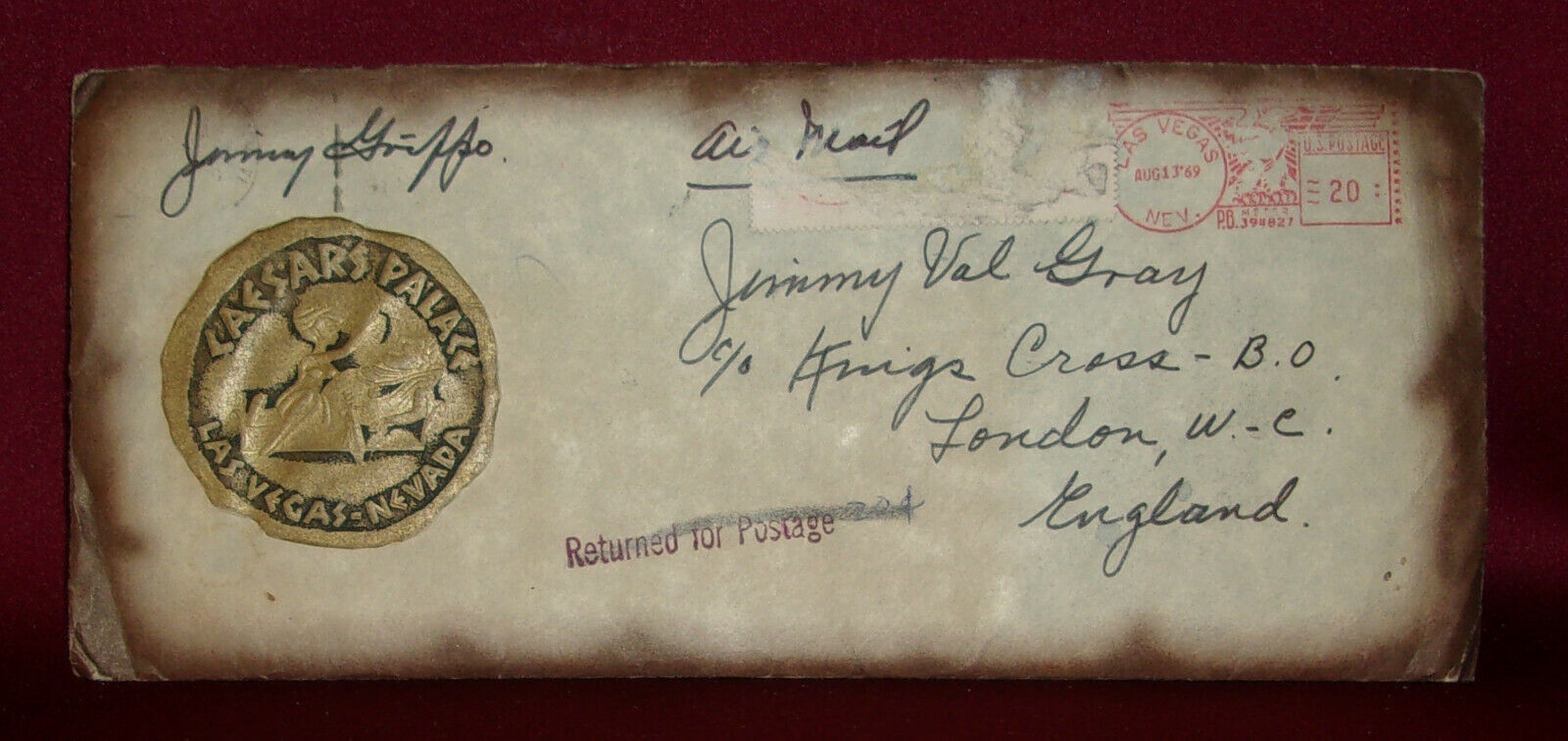 Mailing envelope (dated Aug. 13'69) addressed and SIGNED by Jimmy Grippo