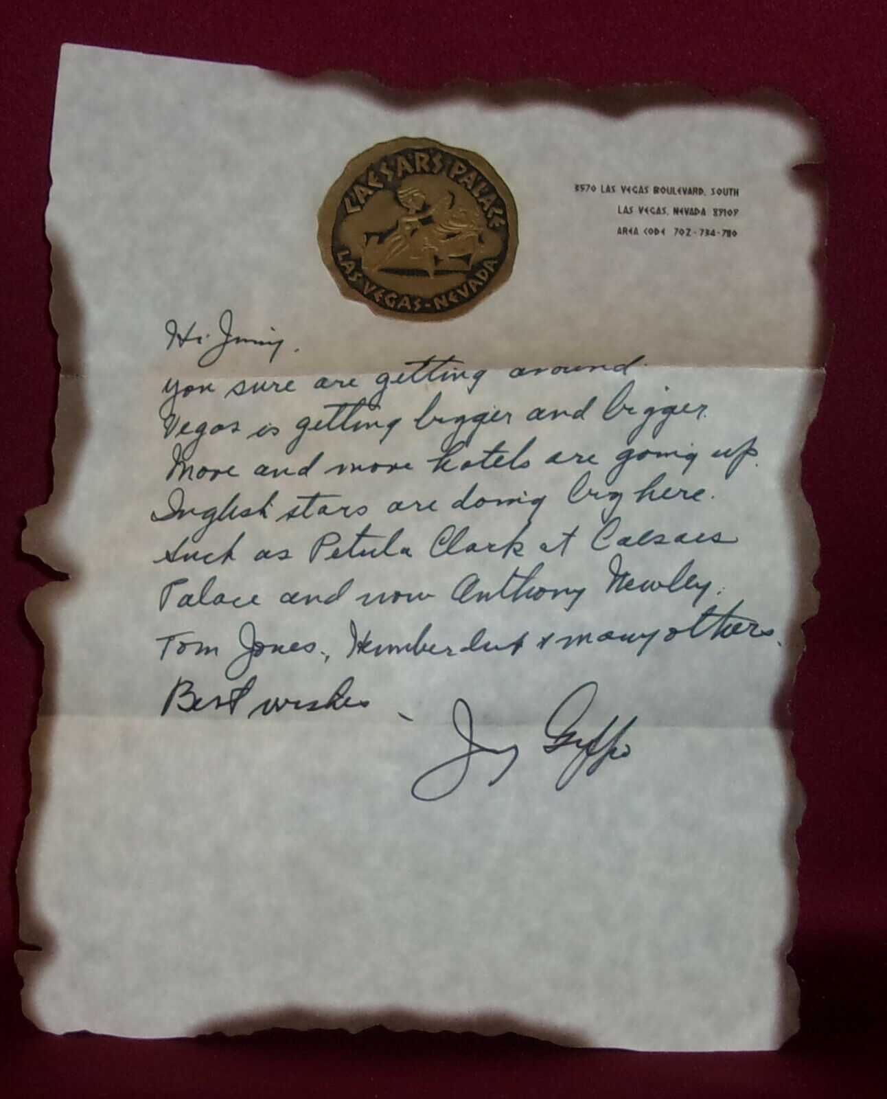 Jimmy Grippo ORIGINAL HANDWRITTEN LETTER SIGNED TWICE +extras Las Vegas MAGICIAN