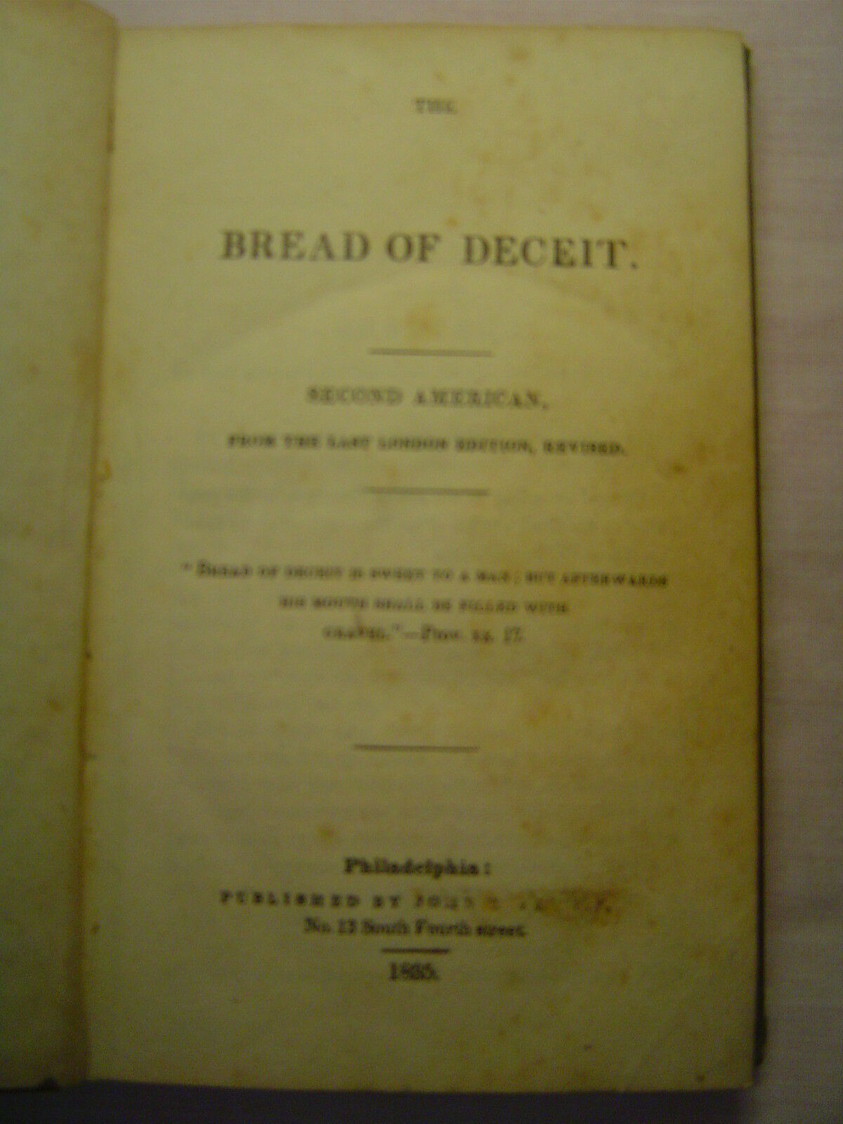 THE BREAD OF DECEIT, (no author stated), second American edition, 1835 RARE