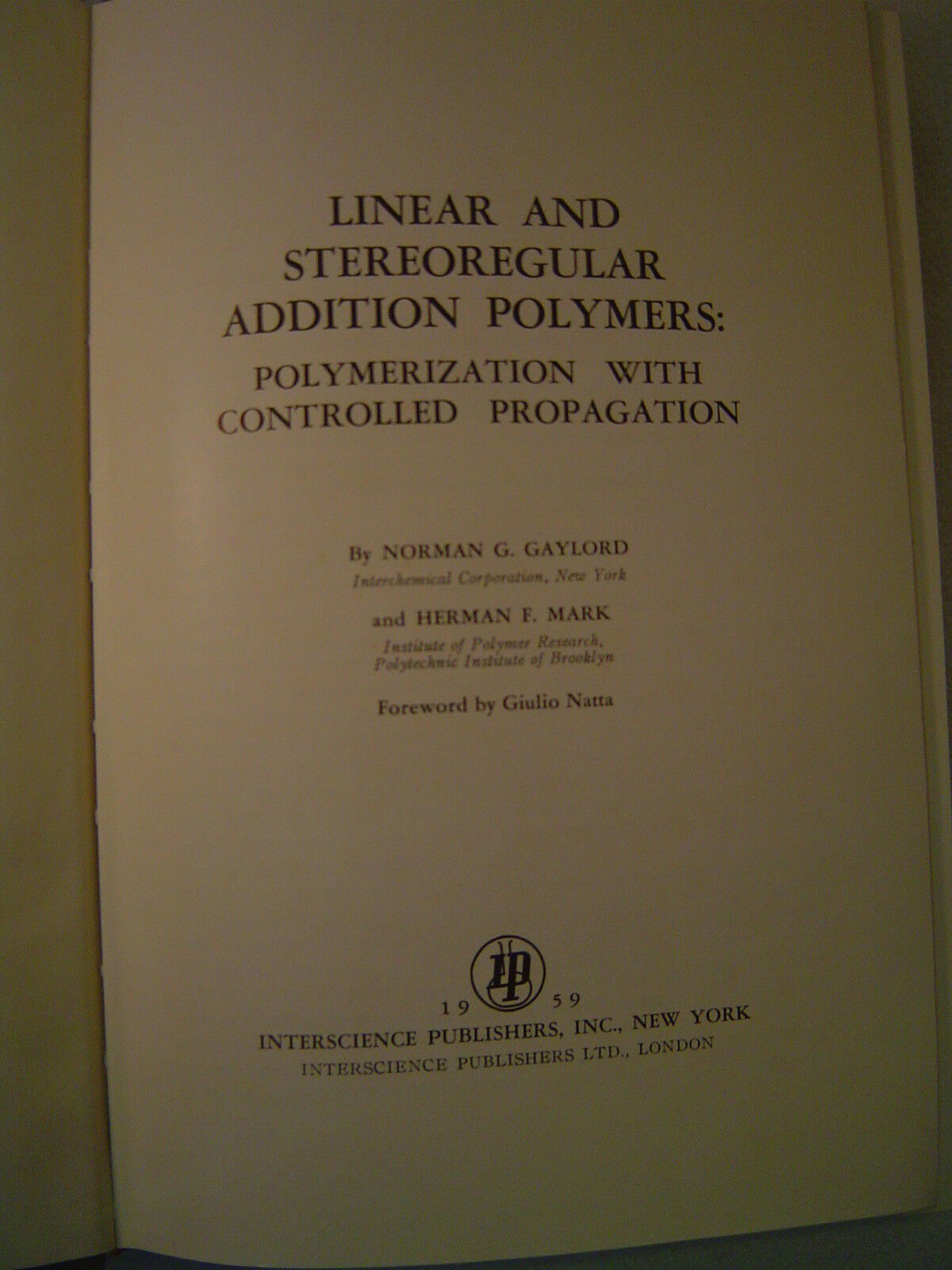 LINEAR AND STEREOREGULAR ADDITION POLYMERS, Gaylord & Mark, 1st edition, 1959