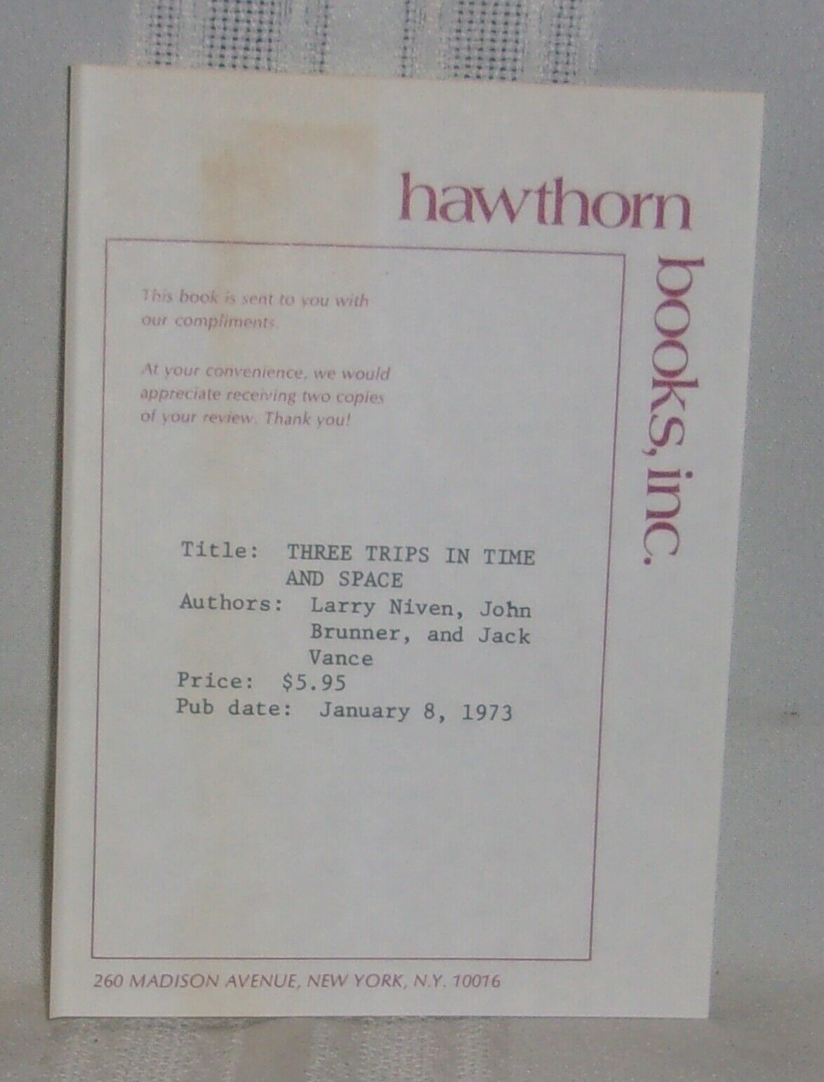 THREE TRIPS IN TIME AND SPACE First edition: Review Copy Niven; Brunner; Vance
