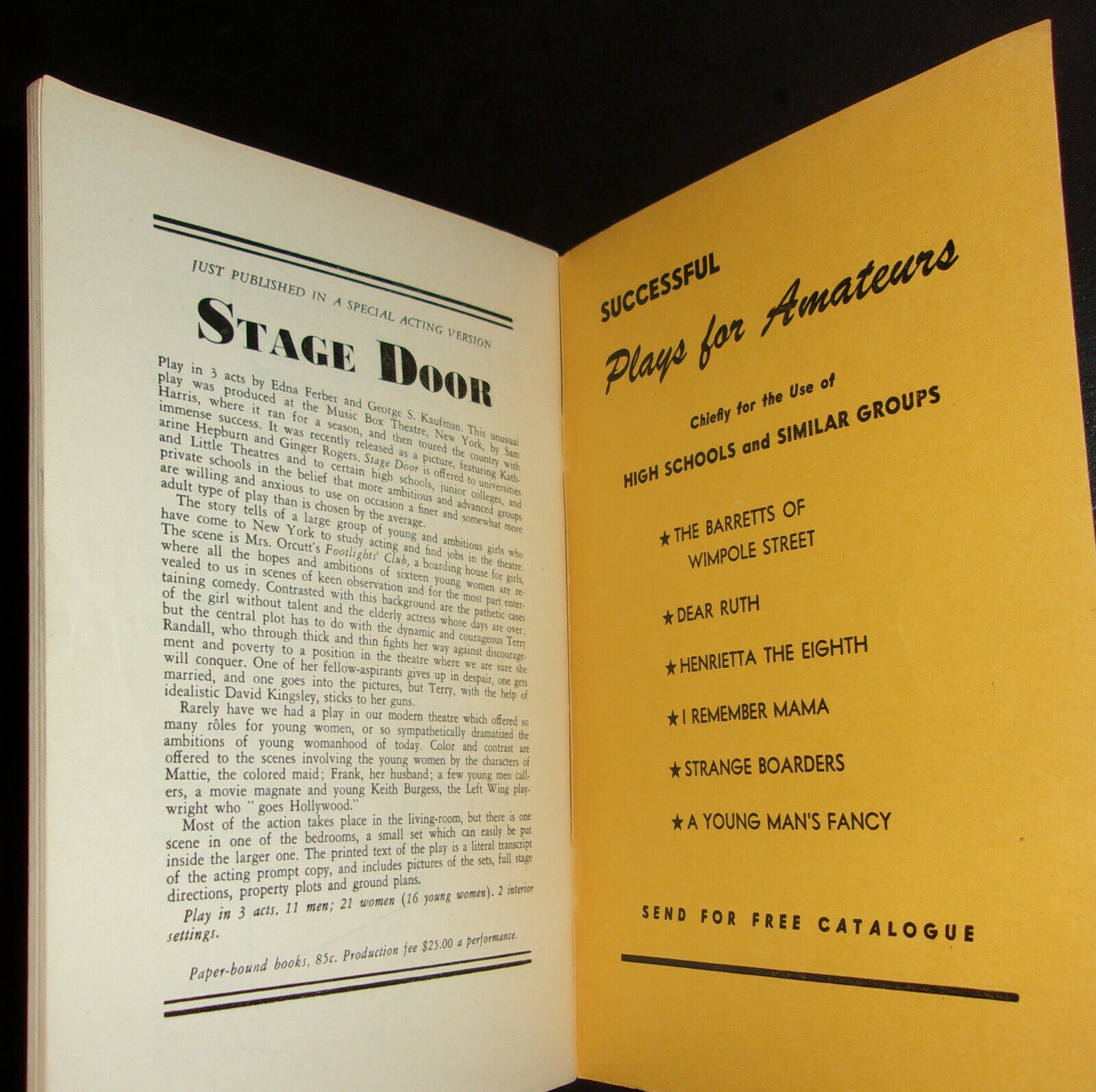 The promoted play to the last page is "Just published in a special acting version: STAGE DOOR".