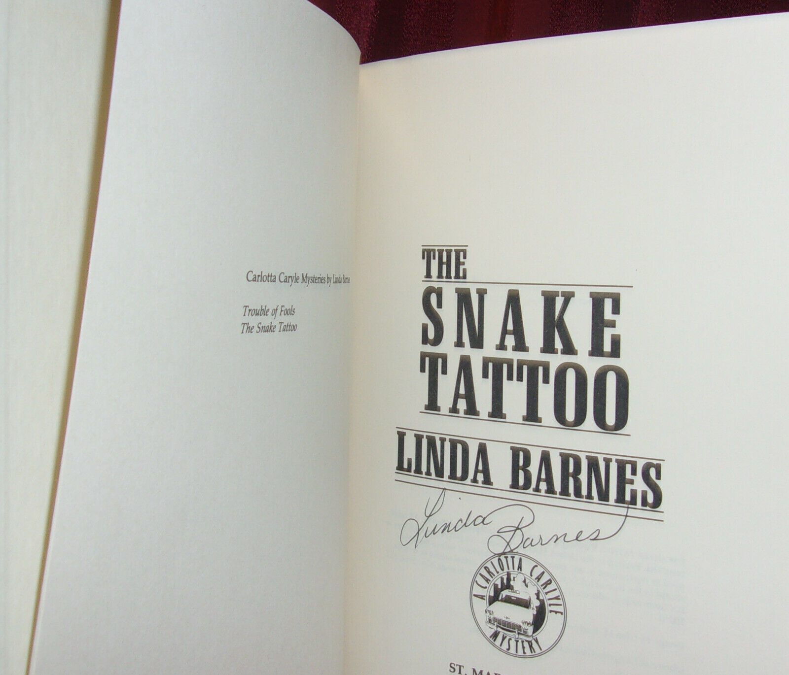 Linda Barnes SNAKE TATTOO First edition SIGNED Mystery Detective Carlotta HC DJ