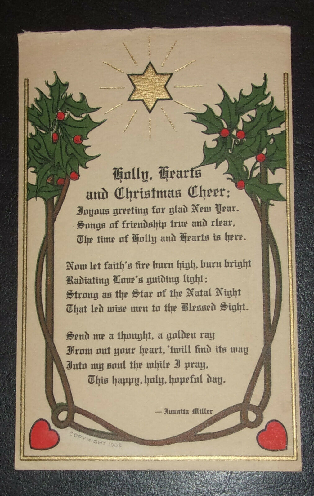 Joaquin Miller CHRISTMAS Greeting Card 1909 Juanita Miller Arts-and-Crafts Style