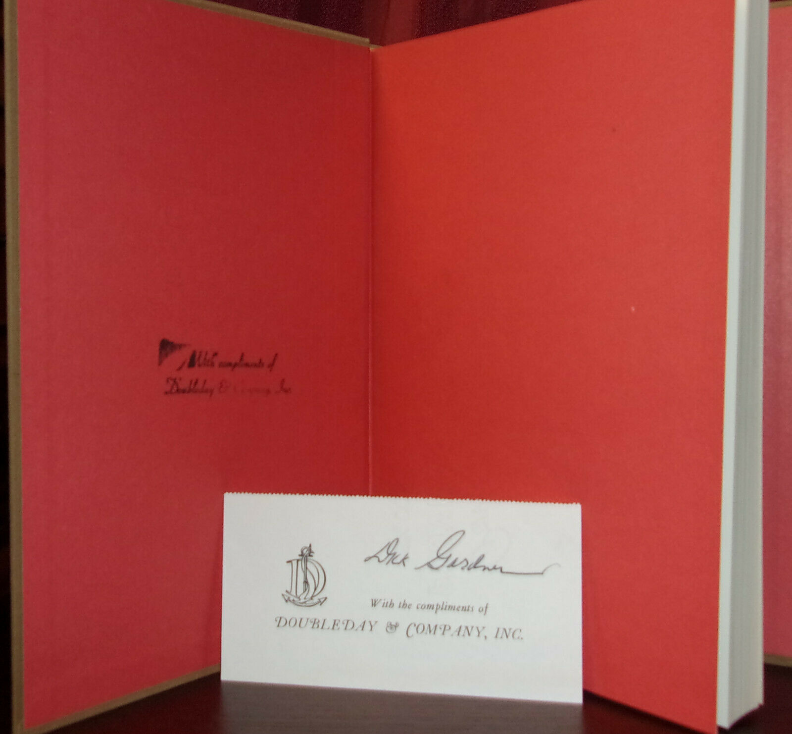 Also, laid-in is a publisher's gift slip SIGNED by editor Dick Gardner, printed with Doubleday's anchor insignia and 'With the compliments of Doubleday Company Inc.'.