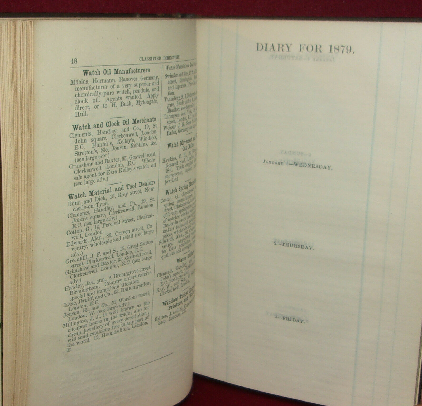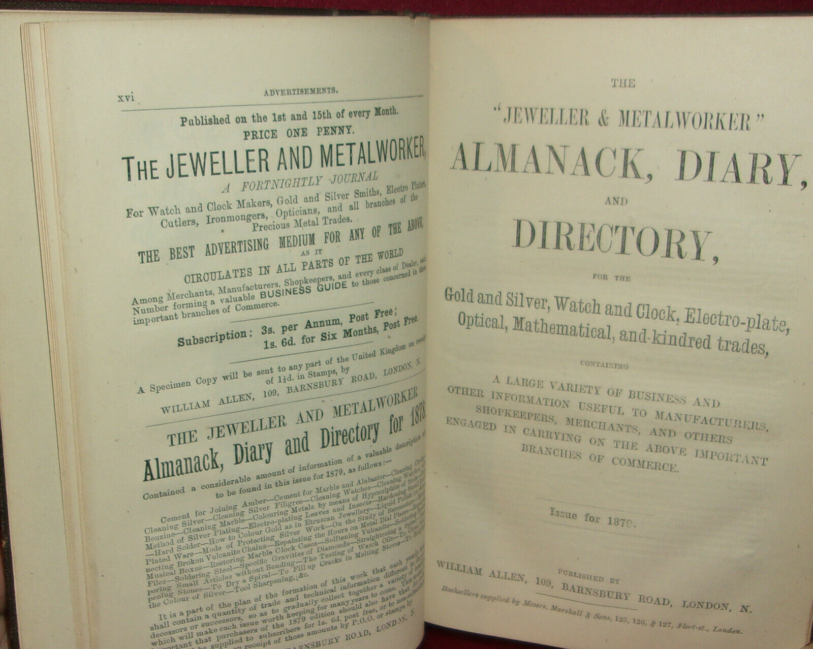 THE JEWELLER AND METAL WORKER ALMANACK, DIARY AND DIRECTORY 1879 Vintage adverts