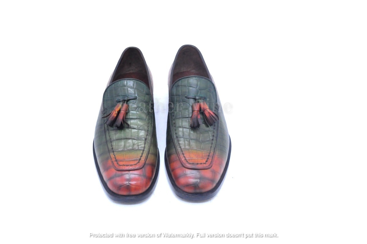 Handmade Men's Two Tone Tassel Patina Crocodile Leather Loafers Shoes For men