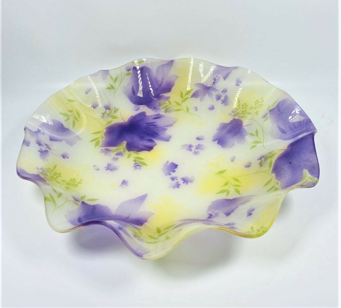 LOT OF 7 Floral Party Plates Scalloped Edge 10" Round - Purple