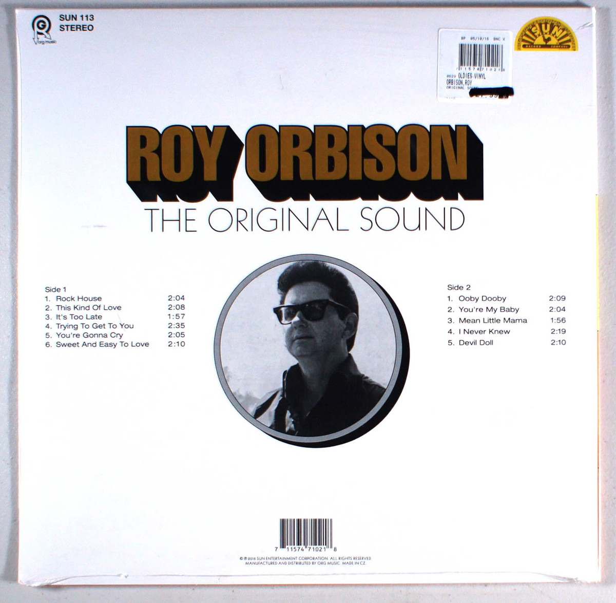 The Original Sound, by Roy Orbison, is a re-release of his album Roy Orbison at the Rock House with variously differing titles. According to the official Roy Orbison U.S. discography by Marcel Riesco, Roy Orbison at the Rock House is the first album by Orbison on the Sun Records label in 1961, at a time when Orbison had already moved to the Monument label. Sun Records owner Sam Phillips had a collection of songs Orbison had recorded at Sun between 1956 and '58. Phillips capitalized on the national recognition Orbison had achieved at Monument through three major hit singles in 1960 and '61 that had gone to the top of the Billboard charts. Most of the songs on Roy Orbison at the Rock House were written by Orbison but the songwriting credits were assigned to Sam Phillips, and are in the traditional rockabilly style the Sun label was known for. Notable exceptions are compositions by other Sun artists Harold Jenkins (better known as "Conway Twitty") and Johnny Cash. Rock House is credited to Orbison and Twitty.