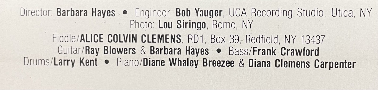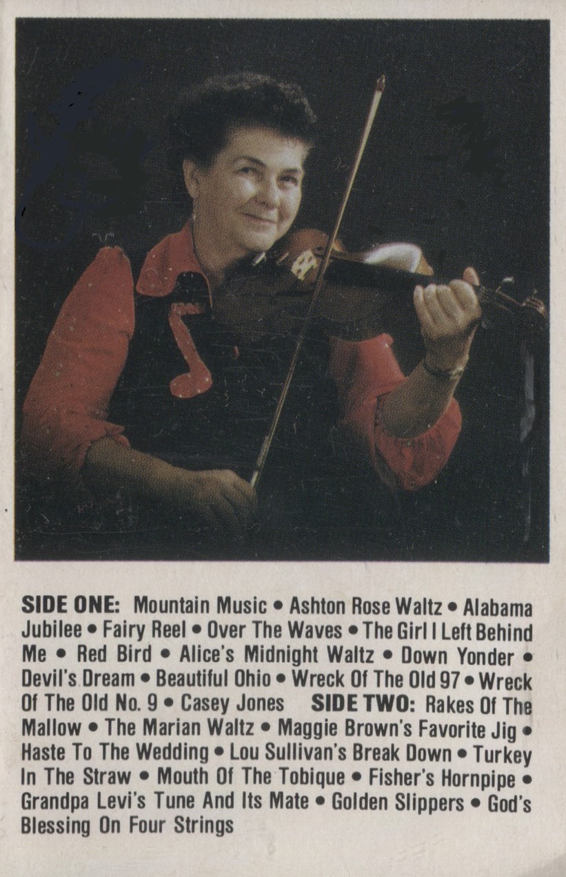 Alice usually performed with guitar or piano backup, and sometimes with other fiddlers as well. From 1960-1975, she also worked with the group “Alice and Her Country Cousins,”and she played at the Redfield Hotel for many years.