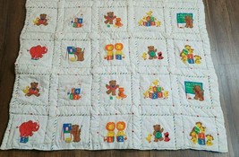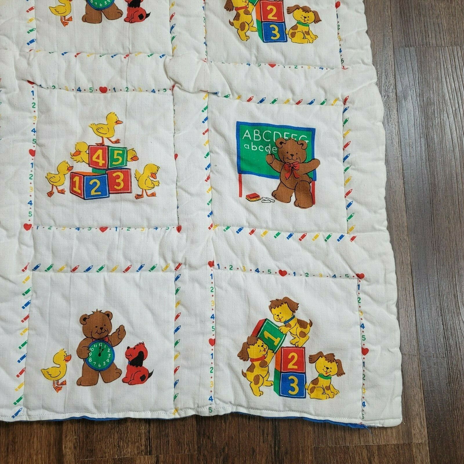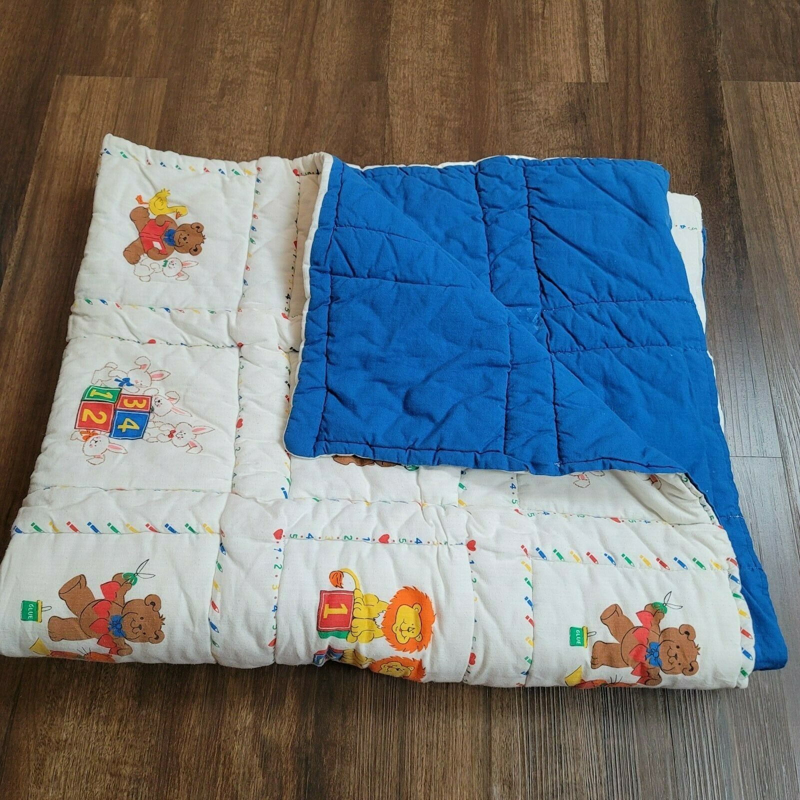 Vintage Baby Toddler Quilt Comforter Blanket Primary Color Bear Bunny Duck Lion