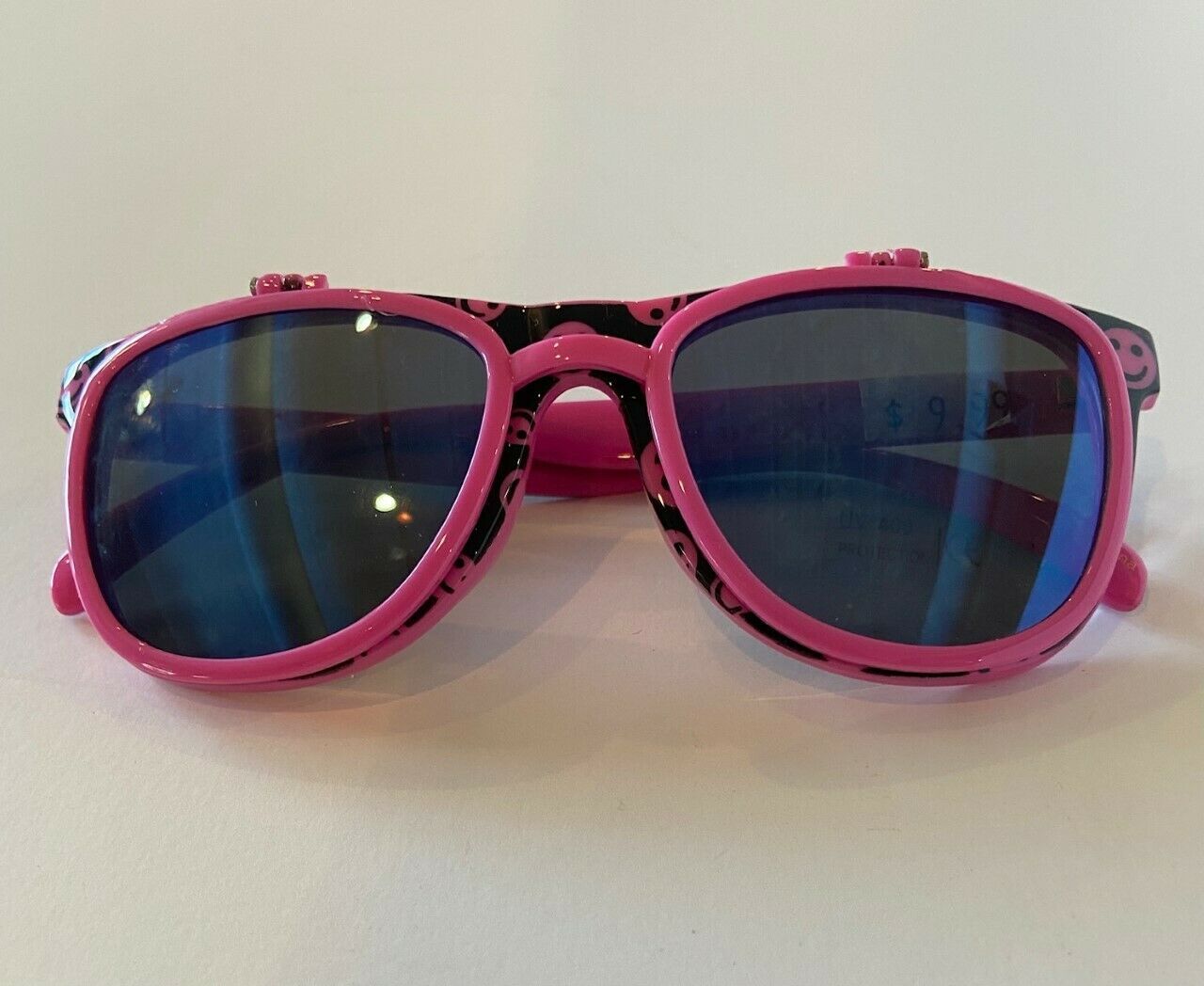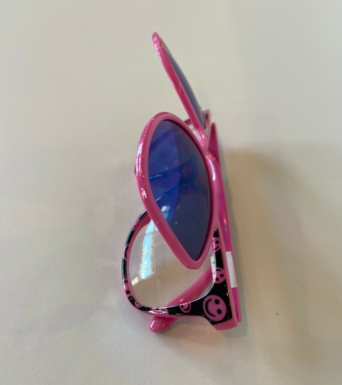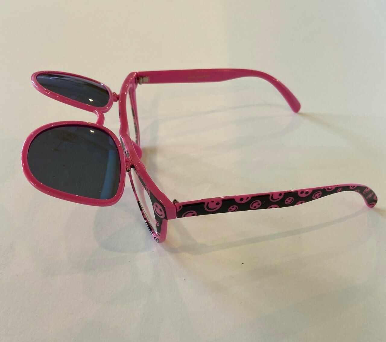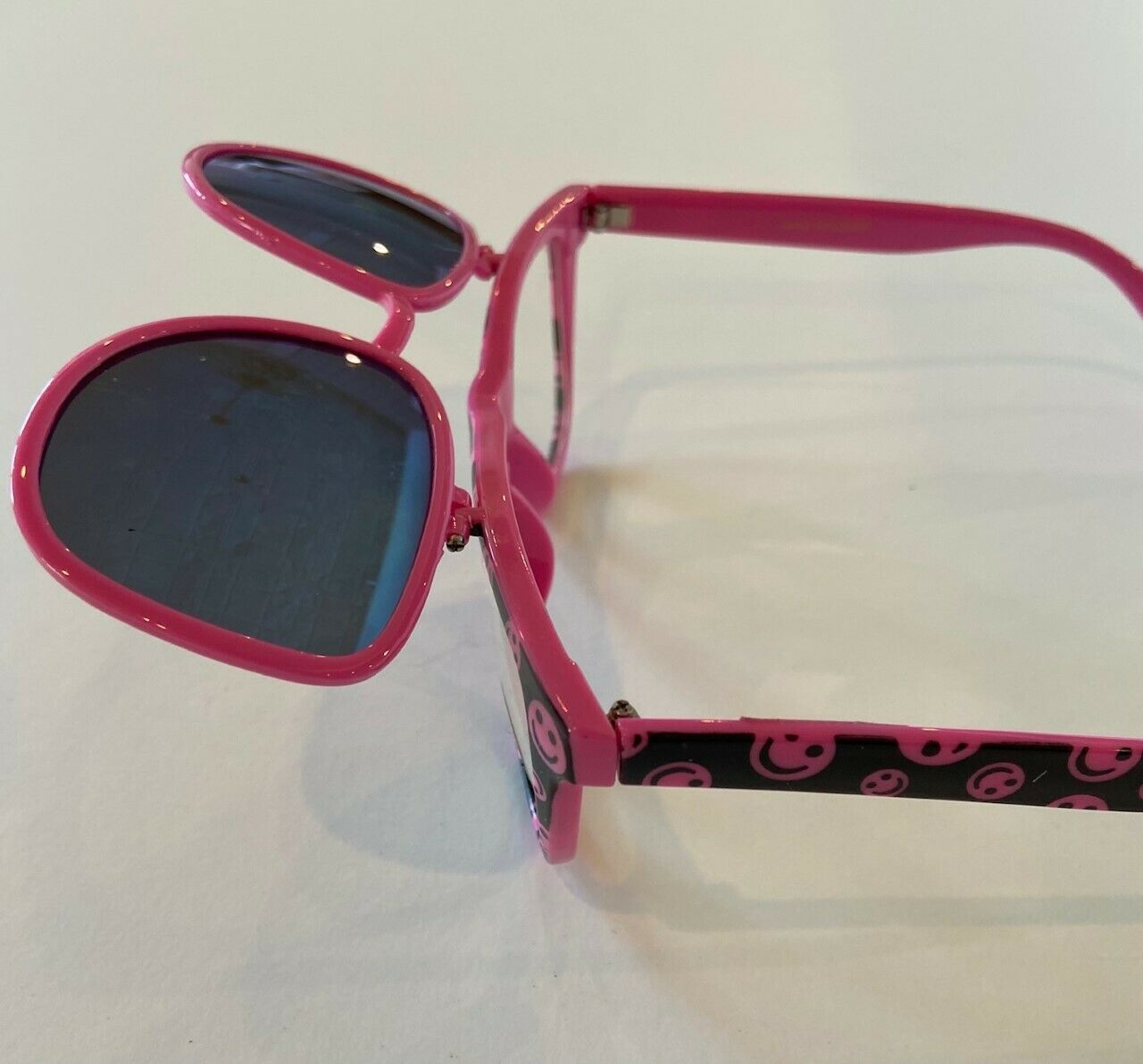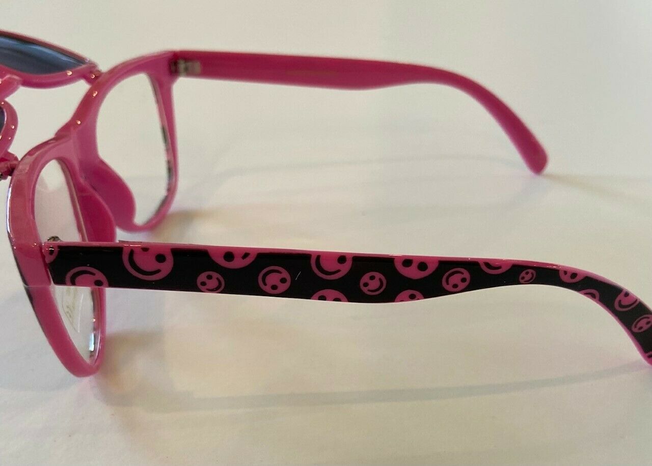 WAYFAIR STYLE GLASSES PINK FLIP UP FRAME W/ HAPPY FACE PRINTS MIRROR LENSES