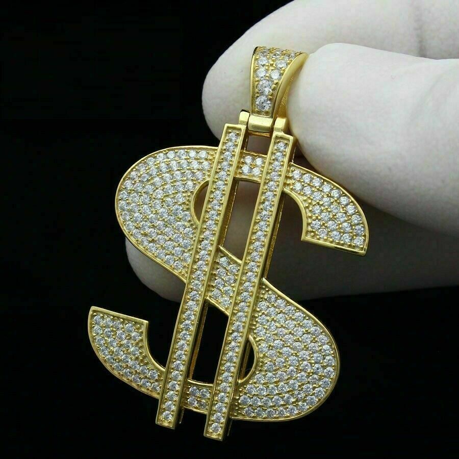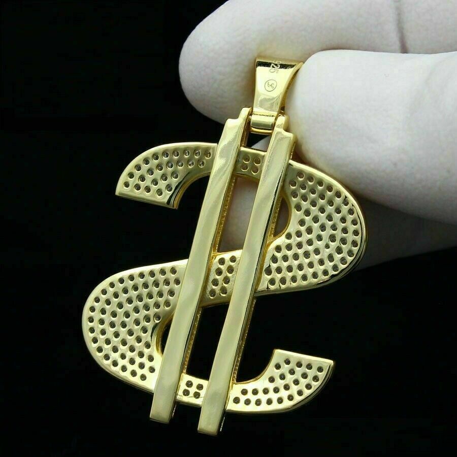 2Ct Round Cut Diamond $ Dollar $ Sign Pendant 14K Yellow Gold Finish Free Chain