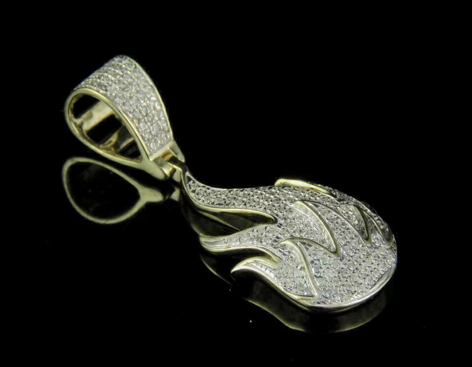 2Ct Round Diamond Fire Flame Men's Pendant Charm 14k Yellow Gold Over Free chain